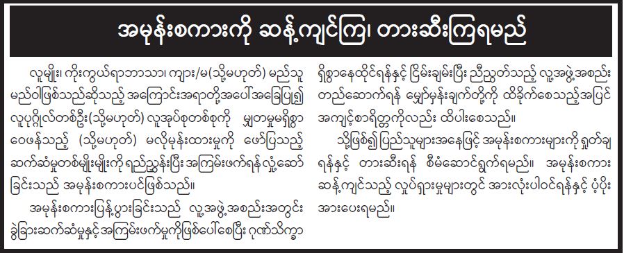 ကျား၊ မ တန်းတူညီမျှရေးနှင့် အမျိုးသမီးအခွင့်အရေးများနှင့်အညီ မြန်မာနိုင်ငံက ပါဝင်ဆောင်ရွက်လျက်ရှိ