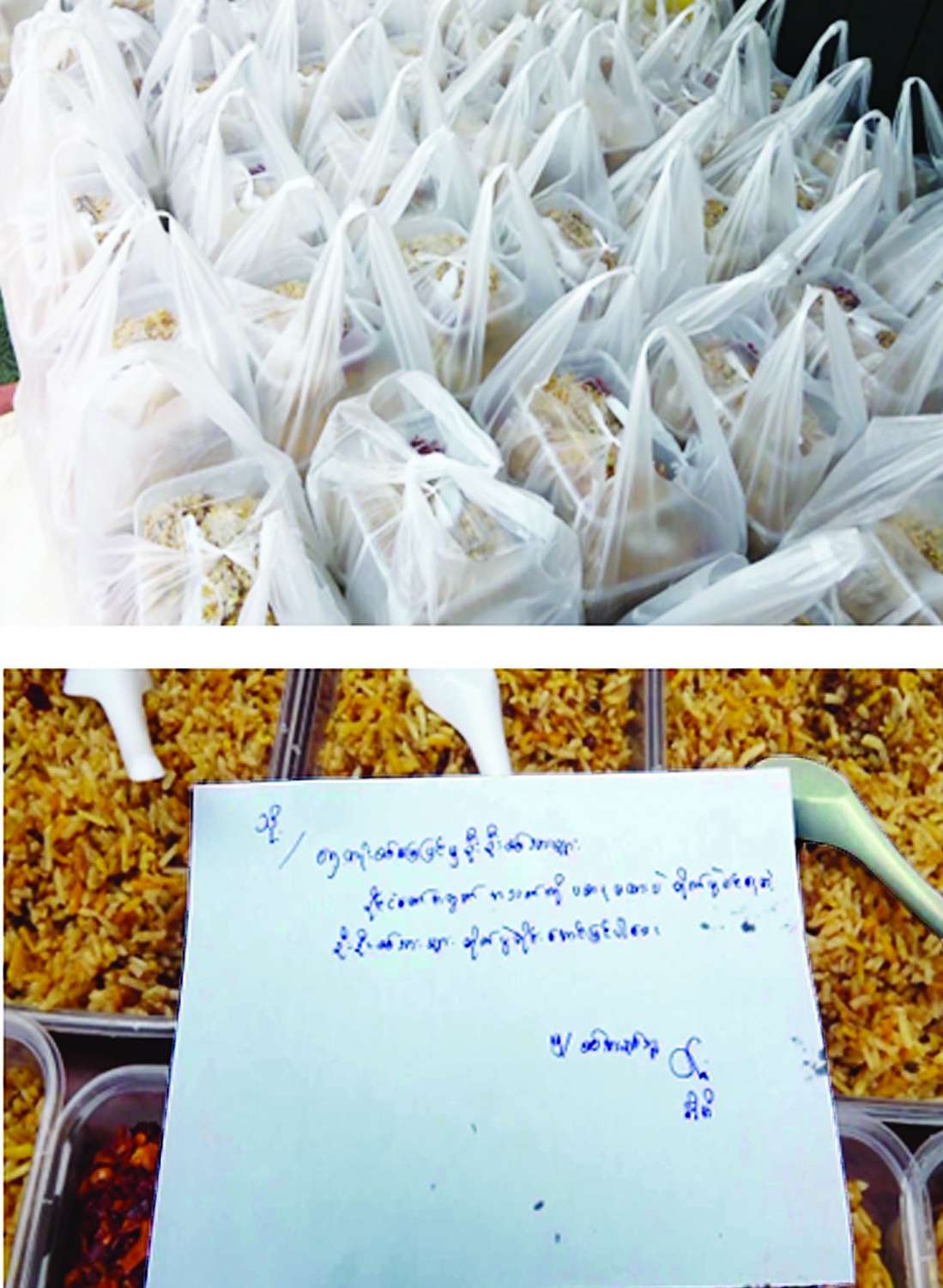 ယနေ့တွင် စေတနာရှင်အလှူရှင် ပြည်သူများက အရှေ့မြောက်တိုင်းစစ်ဌာနချုပ်နယ်မြေအတွင်း နိုင်ငံတော်ကာကွယ်ရေးနှင့် လုံခြုံရေးတာဝန်များ ထမ်းဆောင်နေသည့် လုံခြုံရေးတပ်ဖွဲ့ဝင်များအတွက် ဒံပေါက်ထမင်းဘူးများကို ပေးအပ်လှူဒါန်းကြရာ တာဝန်ရှိသူများက လက်ခံရယူပြီး လားရှိုးမြို့မှတစ်ဆင့် တပ်မတော်မော်တော်ယာဉ်များ၊ ရဟတ်ယာဉ်များဖြင့် လုံခြုံရေးတပ်ဖွဲ့ဝင်များ၏ လက်ဝယ်အရောက် လိုက်လံပို့ဆောင်ပေးကြသည်။