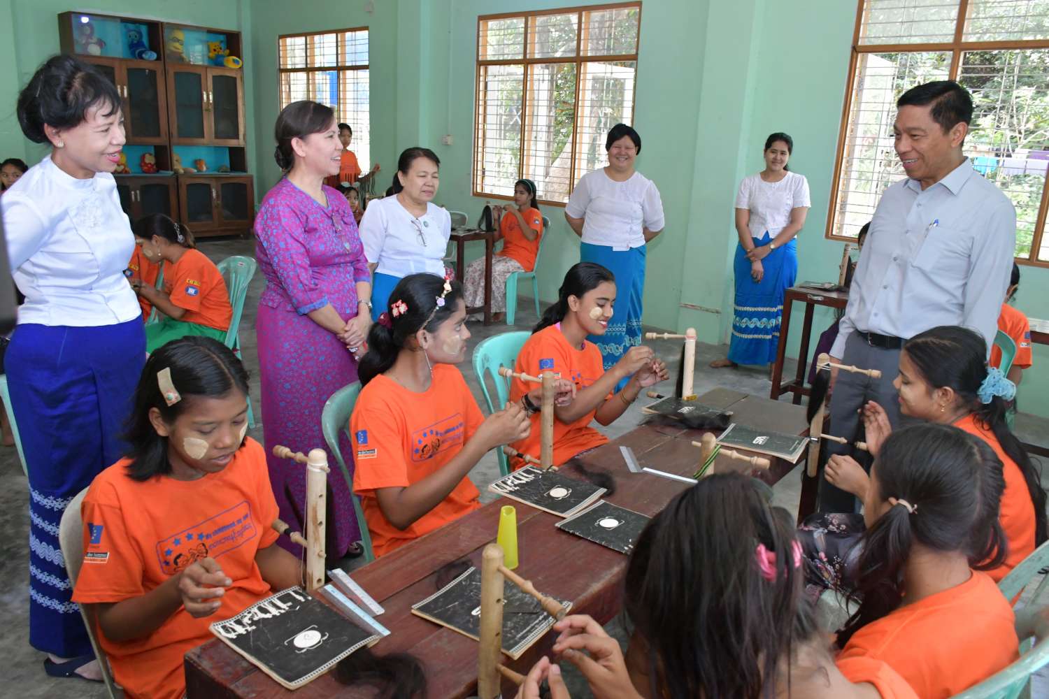 လူမှုဝန်ထမ်း၊ ကယ်ဆယ်ရေးနှင့် ပြန်လည်နေရာချထားရေးဝန်ကြီးဌာန ပြည်ထောင်စုဝန်ကြီး ဒေါက်တာစိုးဝင်းသည် ယနေ့နံနက်ပိုင်းတွင် ရန်ကုန်တိုင်းဒေသကြီး ထောက်ကြံ့အမျိုးသမီးလေးများ သင်တန်းကျောင်းသို့ ရောက်ရှိပြီး သင်တန်းသူများအား ကျောင်းပညာနှင့် အသက်မွေးဝမ်းကျောင်းပညာများ သင်ကြားပေးနေမှုကို ကြည့်ရှုစစ်ဆေးကာ ဘဝလမ်းကြောင်းကို အသိပညာ၊ အတတ်ပညာ၊ စဉ်းစားတွေးခေါ်တတ်မှုတို့ဖြင့် လျှောက်လှမ်းနိုင်ရေး ကြိုစားလေ့လာသင်ယူကြရန် မှာကြားသည်။