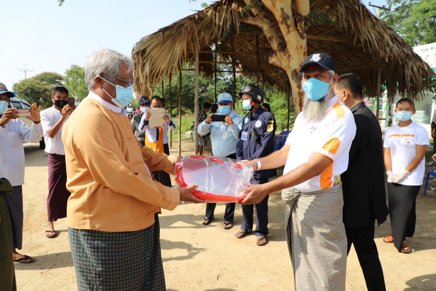 စစ်ကိုင်းတိုင်းဒေသကြီးအစိုးရအဖွဲ့ဝန်ကြီးချုပ် ဒေါက်တာမြင့်နိုင်နှင့်အတူ ခရိုင်၊မြို့နယ် စီမံခန့်ခွဲမှုကော်မတီ ဥက္ကဋ္ဌ များလိုက်ပါ၍ ယနေ့ နံနက်(၉)နာရီက ရွှေဘိုမြို့ပေါ်ရှိ မြို့ဝင်/ထွက် မြောင်းကြီးဂိတ်နှင့် ရွှေဘိုမြို့ဝင်ဂိတ်တို့တွင် COVID-19 ရောဂါ ကာကွယ်၊ထိန်းချုပ်၊ ကုသရေး လုပ်ငန်းများ တာဝန်ထမ်းဆောင်နေသောဝန်ထမ်းများနှင့် အရပ်ဘက် စေတနာရှင် လူမှုအဖွဲ့အစည်း များအား တွေ့ဆုံအားပေးစကားပြောကြားပြီး အဆိုပါဂိတ်များတွင် ကျန်းမာရေးအတွက် ကိုယ်အပူချိန်တိုင်းတာခြင်းနှင့် ခရီးသွားရာဇဝင်များ စစ်ဆေး ဆောင်ရွက်နေမှု အခြေအနေတို့အား ကြည့်ရှုစစ်ဆေးကာ ကျန်းမာရေးသုံးထောက်ပံ့ရေး ပစ္စည်းများအဖြစ် Face Shield (၂၀၄)ခုကို တာဝန်ရှိသူထံသို့ပေးအပ်ခဲ့ကြောင်း သိရသည်။