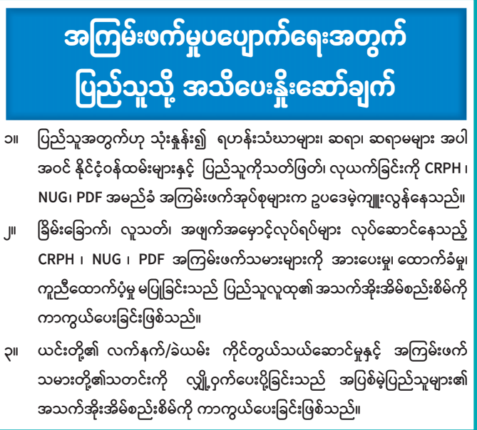 အကြမ်းဖက်မှုပပျောက်ရေးအတွက် ပြည်သူသို့ အသိပေးနှိုးဆော်ချက်