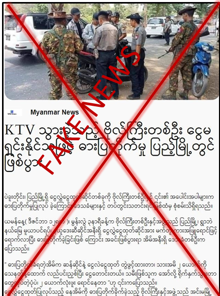 အဆိုပါသတင်းနှင့်ပတ်သက်၍ သက်ဆိုင်ရာတပ်မဌာနချုပ်မှ တာဝန်ရှိသူများအား ဆက်သွယ်မေးမြန်းမှုနှင့် တပ်တွင်းသတင်းအရင်းအမြစ်များအရ မှန်ကန်မှုမရှိကြောင်း သတင်းတု၊ သတင်းအမှားများသာဖြစ်ကြောင်း သိရှိရပါသည်။