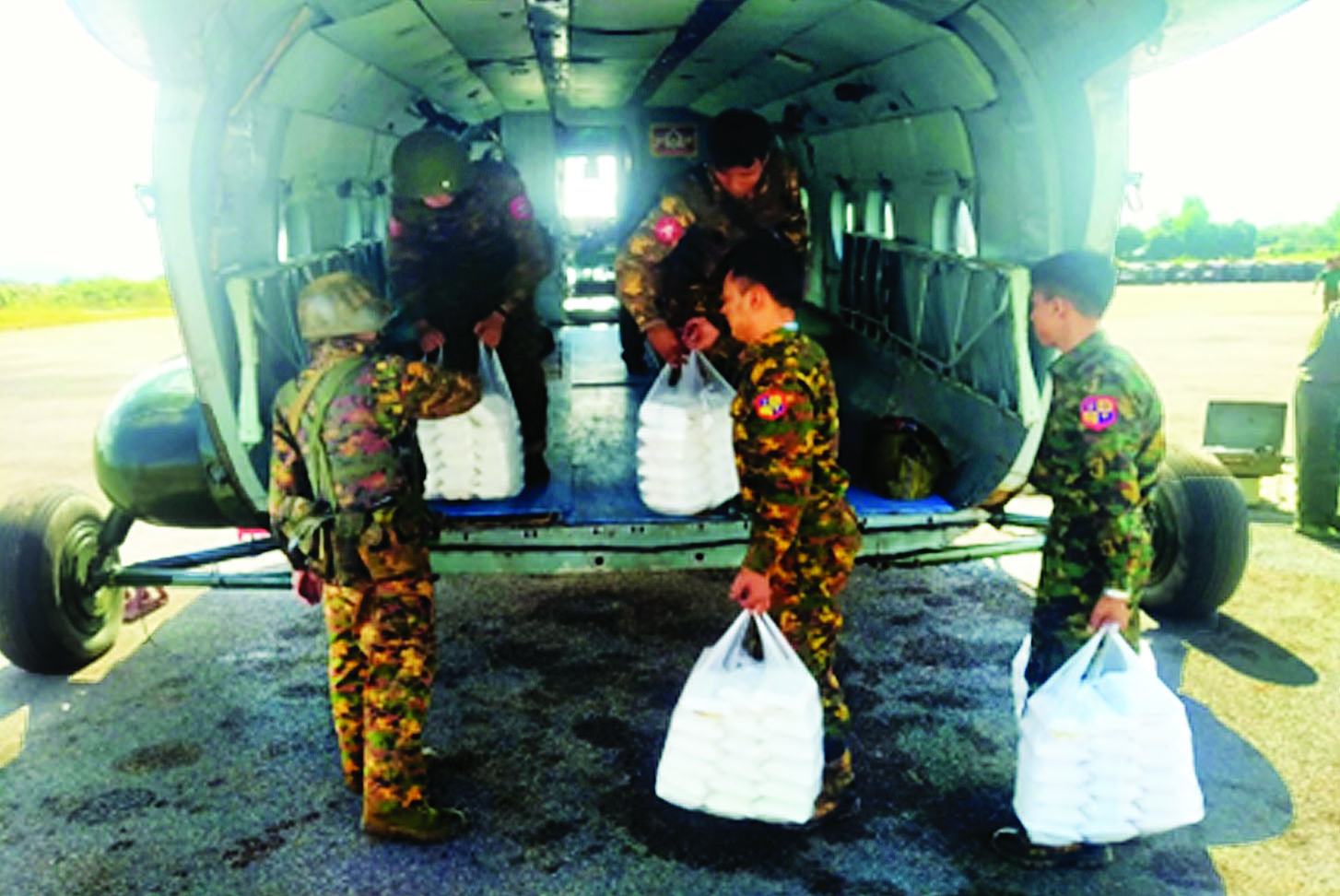 နိုင်ငံတော်ကာကွယ်ရေးနှင့် လုံခြုံရေးတာဝန်များကို စွမ်းစွမ်းတမံ ထမ်းဆောင်လျက်ရှိသော လုံခြုံရေးတပ်ဖွဲ့ဝင်များအတွက် စေတနာရှင်အလှူရှင် ပြည်သူများက ပဲထမင်းဘူးများနှင့် စားသောက်ဖွယ်ရာများ ပေးအပ်လှူဒါန်း