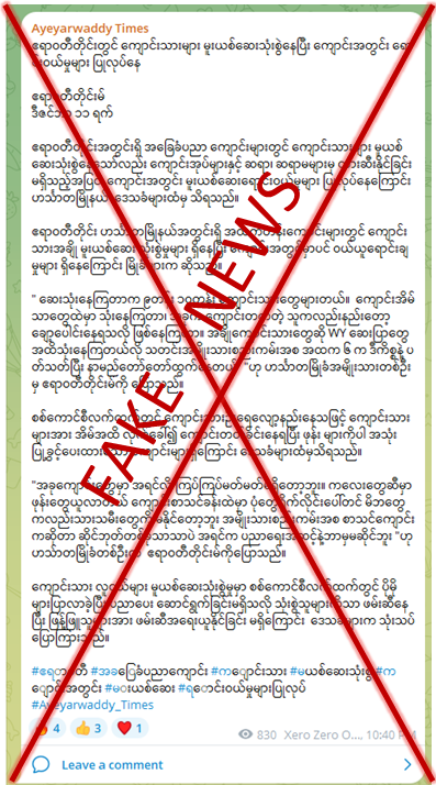 အကြမ်းဖက်အားပေး ပြည်ဖျက်မီဒီယာများမှ မီဒီယာကို အကြမ်းဖက်လက်နက်သဖွယ် အသုံးချကာ သတင်းတု၊ သတင်းမှားတွေကို ရေးသားဖော်ပြလျက်ရှိပြီး နိုင်ငံတော်တည်ငြိမ်အေးချမ်းမှုကို ပျက်ပြားစေရန် လုပ်ဆောင်နေခြင်းသာဖြစ်ကြောင်း သတင်းရရှိပါသည်။