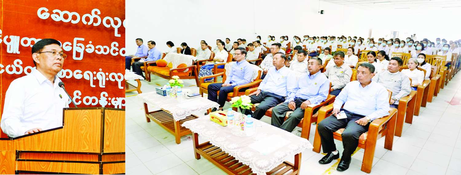 သင်တန်းကျောင်းသို့ တက်ရောက် သင်ကြားနေသည့် သင်တန်းသားသင်တန်းသူများအနေဖြင့် ဝန်ထမ်းကျင့်ဝတ်၊ လူ့ကျင့်ဝတ်များကို နားလည်သိရှိပြီး စည်းကမ်းရှိသော ဝန်ထမ်းကောင်းများဖြစ်လာအောင် လေ့ကျင့်ဆောင်ရွက်ရန် လိုအပ်ပါကြောင်း၊ သင်တန်းသားများသည် နိုင်ငံ့ဝန်ထမ်းများ ဖြစ်သည်နှင့်အညီ မိမိတို့ဌာနကပေးအပ်သည့် တာဝန်များကိုကျေပွန်စွာထမ်းဆောင်ရင်း နိုင်ငံ့ဝန်ထမ်းကောင်းများဖြစ်အောင် ကျင့်ကြံကြိုးစားအားထုတ်ပြီး နိုင်ငံတော်၏ကျေးဇူးသစ္စာကို စောင့်သိရိုသေကာ ကိုယ်စီကျရာတာဝန်များကို ကြိုးစားထမ်းဆောင်ခြင်းဖြင့် မိမိကိုယ်တိုင်နှင့် ဌာန၏ဂုဏ်သိက္ခာကို ထိန်းသိမ်းမြှင့်တင်သွားကြရန် တိုက်တွန်းမှာကြားလိုကြောင်း ပြောကြားပြီး သင်တန်းသား သင်တန်းသူများကို ရင်းရင်းနှီးနှီးတွေ့ဆုံနှုတ်ဆက်စကား ပြောကြားခဲ့ကြောင်း သိရသည်။