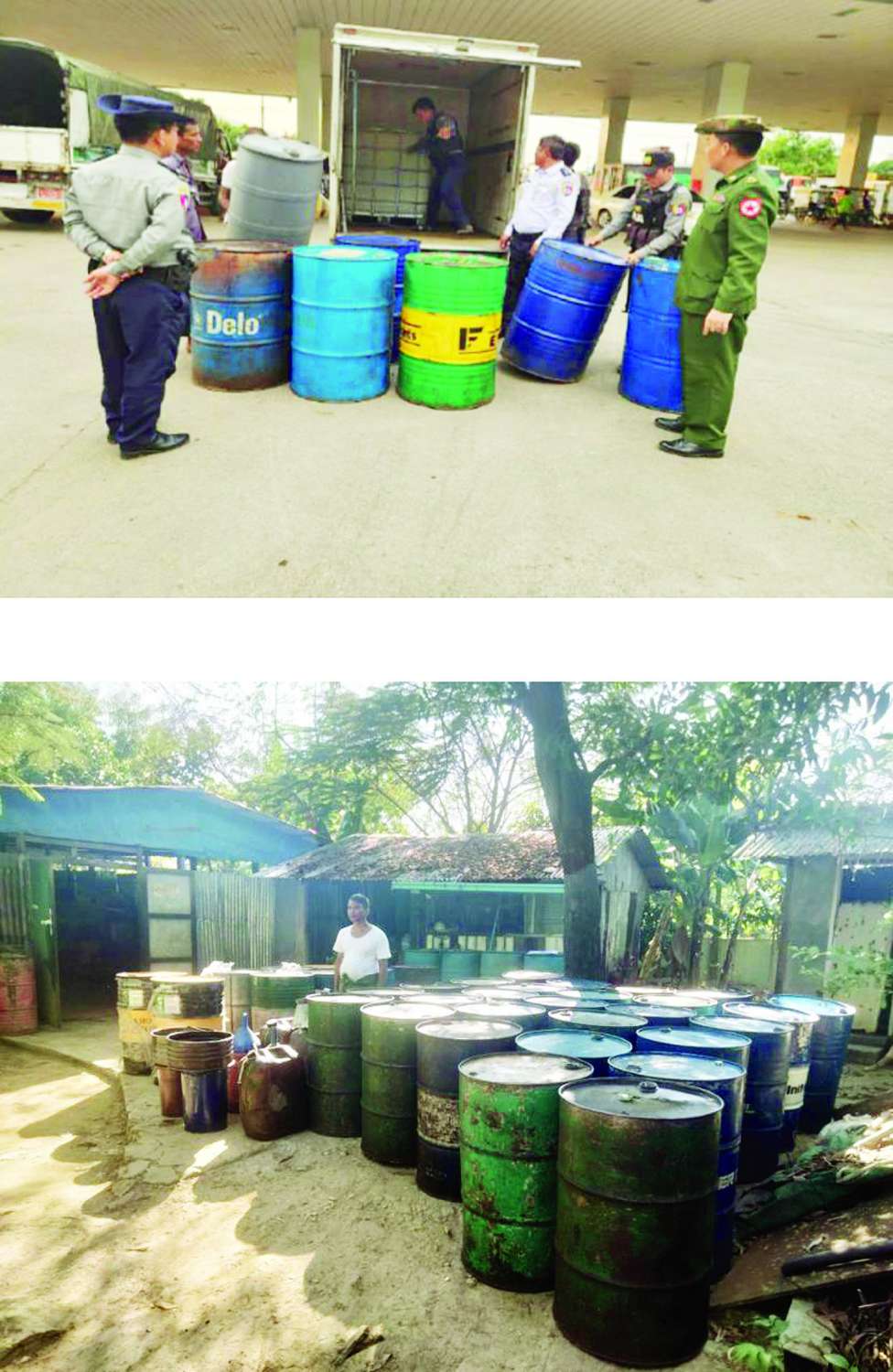 အများပြည်သူများအနေဖြင့် မကြာမီ စက်သုံးဆီပြတ်လပ်မည်ဆိုသည့် လူမှုကွန်ရက်များတွင် လတ်တလောဖြစ်ပေါ်နေသည့် ကောလာဟလသတင်းများကြောင့် စိုးရိမ်ပူပန်မှုဖြင့် ပုံမှန်သုံးစွဲမှုပမာဏထက် ပိုမိုဝယ်ယူကြခြင်း၊ မတော်လောဘဖြင့် စက်သုံးဆီအရောင်းဆိုင်များတွင် အခေါက်ခေါက်အခါခါတန်းစီ၍ ထုတ်ယူပြီး တစ်ဆင့်ပြန်လည်ရောင်းချခြင်းများကြောင့် တိုင်းဒေသကြီး/ပြည်နယ်များရှိ စက်သုံးဆီအရောင်းဆိုင်အချို့တွင် ဖြည့်တင်းပေးနိုင်မှုစွမ်းအား ကျော်လွန်သည်အထိ စက်သုံးဆီများကို ဝယ်ယူလျက်ရှိရာ အရောင်းဆိုင်များတွင် စက်သုံးဆီများ ပြတ်လပ်မှုမရှိစေရန်အတွက် စက်သုံးဆီများကို အဆက်မပြတ် ပို့ဆောင်ဖြန့်ဖြူးပေးလျက်ရှိသည့်အပြင် စက်သုံးဆီအရောင်းဆိုင်များတွင် အကြိမ်ကြိမ်တန်းစီဝယ်ယူကာ တစ်ဆင့်ပြန်လည်ရောင်းချမှုများနှင့် တရားမဝင်သိုလှောင်ရောင်းချခြင်းများနှင့် ဆီတင်ယာဉ်ဖြင့် တရားမဝင်သယ်ယူပို့ဆောင်ခြင်းများအား တရားမဝင်ကုန်သွယ်မှုတိုက်ဖျက်ရေးအထူးအဖွဲ့ဝင်များ ပါဝင်သော ဌာနဆိုင်ရာပူးပေါင်းဖွဲ့များဖြင့် စစ်ဆေးဖော်ထုတ်ဖမ်းဆီးလျက်ရှိရာ ၅-၁၀-၂၀၂၃ ရက်နေ့တွင် မန္တလေးတိုင်းဒေသကြီး ရန်လင်းအောင်ကားဂိတ်တွင် ရပ်တန့်ထားသည့် မော်တော်ယာဉ်ပေါ်တွင် သယ်ဆောင်လာသည့် တရားမဝင်ချက်ဆီ ၄၅ ဂါလန်ဆံ့ ပီပါ ၈၄ လုံး ဂါလန် ၃၇၈၀ ခန့်အားလည်းကောင်း၊ ၈-၁၀-၂၀၂၃ ရက်နေ့တွင် စစ်ကိုင်းတိုင်းဒေသကြီး မုံရွာမြို့အတွင်း မော်တော်ယာဉ်ပေါ်တွင် သယ်ဆောင်လာသည့် တရားမဝင်ချက်ဆီ ၃၅ ဂါလန်ဆံ့ ပီပါ ၆၅ လုံး ၂၂၇၅ ဂါလန်ခန့်အားလည်းကောင်း၊ ၂၄-၁၀-၂၀၂၃ ရက်နေ့တွင် မုံရွာမြို့ကမ်းနားလမ်းဘေးရှိ ရပ်ကွက်ရုံးရှေ့ရှိ သုံးဘီးဆိုင်ကယ် နှစ်စီးပေါ်တွင် သယ်ဆောင်လာသည့် တရားမဝင်ချက်ဆီ ၄၅ ဂါလန်ဆံ့ ပီပါ ၈၄ လုံး ဂါလန် ၃၇၈၀ ခန့်အားလည်းကောင်း၊ ၁-၁၁-၂၀၂၃ ရက်နေ့တွင် မုံရွာမြို့၊ မန်းကျည်းပင်ဈေး ကျောက္ကာလမ်းပေါ်တွင် သုံးဘီးဆိုင်ကယ်တစ်စီးပေါ်တွင် သယ်ဆောင်လာသည့် တရားမဝင်ချက်ဆီ ၃၅ ဂါလန်ဆံ့ ပီပါ ၁၄လုံး ဂါလန် ၄၉၀ ခန့်အားလည်းကောင်း၊ ၃၀-၁၁-၂၀၂၃ ရက်နေ့တွင် မုံရွာမြို့ ကွေ့ကြီးရပ်ကွက် ကမ်းနားလမ်းတွင် ပိုင်ရှင်မဲ့ချက်ဆီပီပါ အလုံး ၂၀ ဂါလန် ၇၀၀ ခန့်အား လည်းကောင်း၊ ၁၂-၁၂-၂၀၂၃ ရက်နေ့တွင် မန္တလေးတိုင်းဒေသကြီး မန္တလေး-စဉ့်ကူးလမ်းပိုင်း မိုင်တိုင် အမှတ် ၄၅/၃ တွင် စက်သုံးဆီ တရားမဝင်သယ်ဆောင်လာသည့် ဆီတင်ယာဉ် Bowser လေးစီးအား စက်သုံးဆီ ၃၆၈၇၇ ဂါလန်ဖြင့်လည်းကောင်း၊ ၁၃-၁၂-၂၀၂၃ ရက်နေ့တွင် မန္တလေးတိုင်းဒေသကြီး အမရပူရမြို့နယ် မြစ်ငယ်တံတားအနီးတွင် တရားမဝင်ချက်ဆီ ဂါလန် ၆၀၀၀ သယ်ဆောင်လာသည့် ဆီသယ်ယာဉ်တစ်စီးအားလည်းကောင်း၊ ၁၄-၁၂- ၂၀၂၃ ရက်နေ့တွင် မန္တလေးတိုင်း