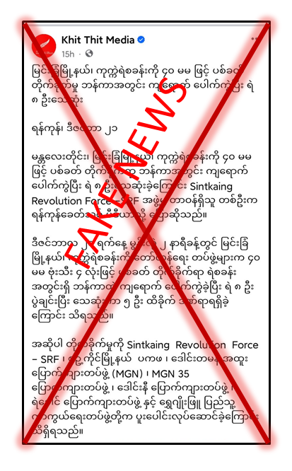 တရားမဝင်ပြည်ဖျက်မီဒီယာများသည် လူမှုကွန်ရက်စာမျက်နှာများကို အသုံးပြု၍ လုံခြုံရေးတပ်ဖွဲ့ဝင်များ ထင်ယောင်ထင်မှားဖြစ်စေရန် သတင်းတု၊ သတင်းအမှားများကို လုပ်ကြံရေးသားပြီး အကြမ်းဖက်လုပ်ရပ်များကို အားပေးအားမြှောက် ပြုလုပ်နေခြင်းသာဖြစ်ကြောင်း သတင်းရရှိပါသည်။