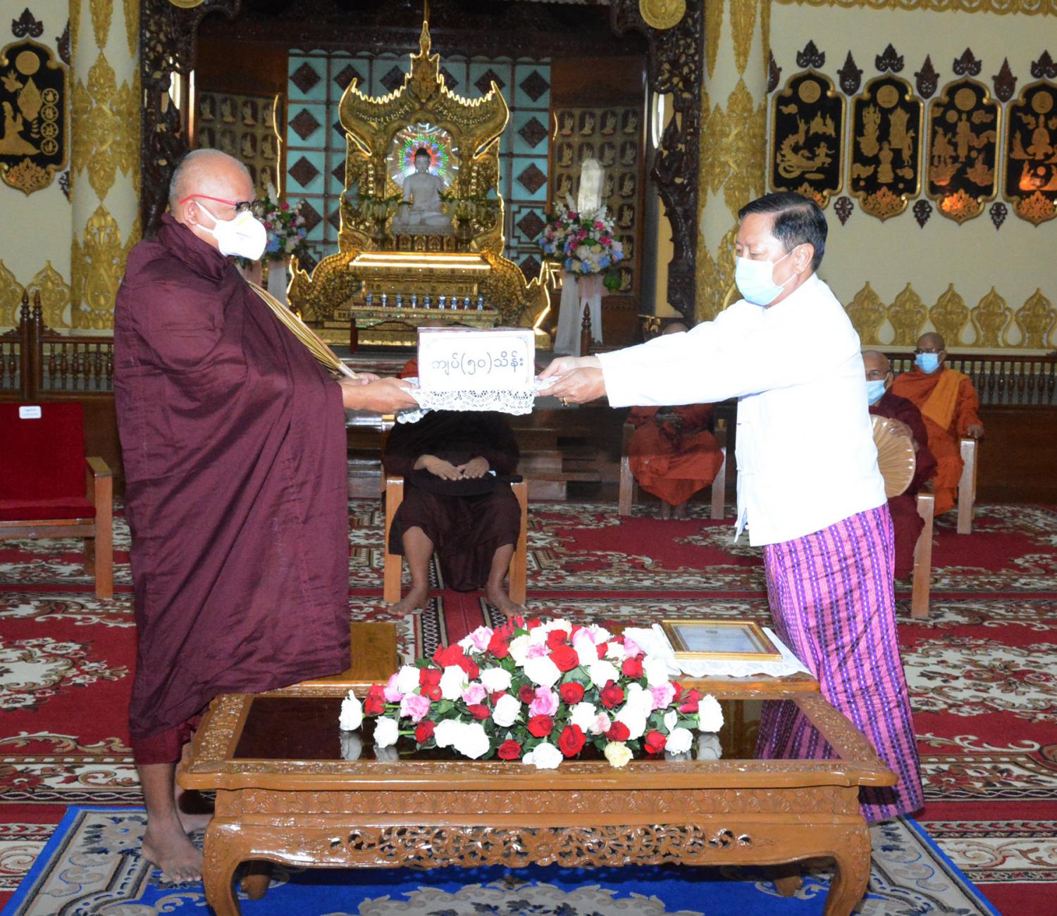 ထာဝရငြိမ်းချမ်းရေးစေတီတော် ဘက်စုံအချောသတ် မွမ်းမံတည်ဆောက်ရေး၊ မဟာသန္တိသုခ ဗုဒ္ဓသာသနာပြု ကျောင်းတော်ကြီး ပြန်လည်မွမ်းမံပြုပြင်ရေးနှင့် ပရိယတ္တိ စာအောင်ဆုပဒေသာပင် အတွက် အလှူငွေများ ပေးအပ်လှူဒါန်းပွဲ အခမ်းအနားကို ယနေ့နံနက် ၉ နာရီက ကမ္ဘာအေးကုန်းမြေရှိ ဝိဇယမင်္ဂလာဓမ္မသဘင်၌ ကျင်းပသည်။
