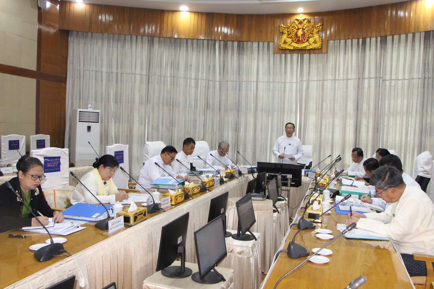 အစည်းအဝေးသို့ ပြည်ထောင်စုအစိုးရအဖွဲ့ရုံးဝန်ကြီးဌာန (၁) ပြည်ထောင်စုဝန်ကြီး ဦးအောင်နိုင်ဦး၊ ရင်းနှီးမြှုပ်နှံမှုနှင့် နိုင်ငံခြားစီးပွားဆက်သွယ်ရေးဝန်ကြီးဌာန ပြည်ထောင်စုဝန်ကြီး ဒေါက်တာကံဇော်၊ စီးပွားရေးနှင့်ကူးသန်းရောင်းဝယ်ရေးဝန်ကြီးဌာန ပြည်ထောင်စုဝန်ကြီး ဦးထွန်းအုံ၊ ပြည်ထောင်စုစာရင်းစစ်ချုပ် ဒေါက်တာခင်နိုင်ဦး၊ စီမံကိန်းနှင့်ဘဏ္ဍာရေးဝန်ကြီးဌာန၊ စိုက်ပျိုးရေး၊ မွေးမြူရေးနှင့် ဆည်မြောင်းဝန်ကြီးဌာန၊ စီးပွားရေးနှင့်ကူးသန်းရောင်းဝယ်ရေးဝန်ကြီးဌာနများမှ ဒုတိယဝန်ကြီးများနှင့် ညွှန်ကြားရေးမှူးချုပ်များ တက်ရောက်ကြသည်။