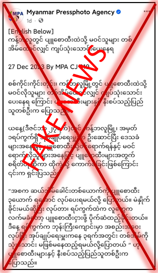 စစ်ကိုင်းတိုင်းဒေသကြီး၊ ကန့်ဘလူမြို့တွင် ပြည်သူ့စစ်ထဲသို့ မဝင်သူများကို တစ်အိမ်ထောင်လျှင် ကျပ်သုံးသောင်းပေးနေရကြောင်း သတင်းတု၊ သတင်းအမှားများကို လူမှုကွန်ရက်စာ မျက်နှာများတွင် မဟုတ်မမှန်ရေးသားဖြန့်ဝေလျက်ရှိ