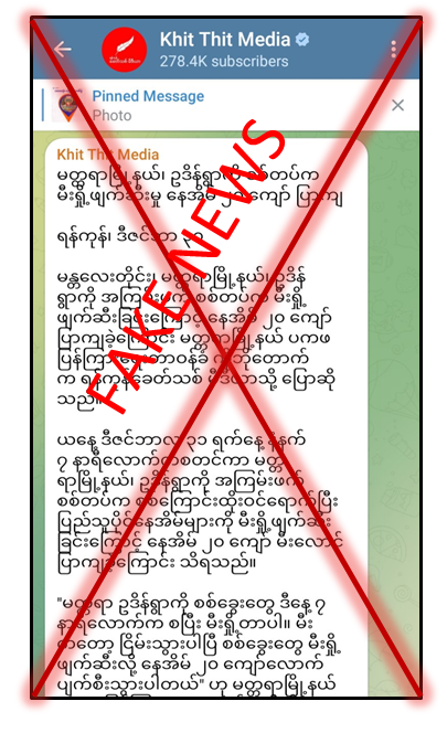 မန္တလေးတိုင်းဒေသကြီး၊ မတ္တရာမြို့နယ်ရှိ ပန်းယျကျေးရွာနှင့် လယ်ကောကြီးကျေးရွာအကြားရှိ ရှမ်းမြောင်းကျောက်မှုန့်စက်ရုံပိုင်ရှင်၏ မိခင်ဖြစ်သူအပါအဝင် အလုပ်သမား ၆ ဦးကို ဒီဇင်ဘာလ ၃၀ ရက်နေ့ ည ၁၀ အချိန်ခန့်က တပ်မတော်မှပစ်ခတ်သတ်ဖြတ်ခဲ့ကြောင်းနှင့် မတ္တရာမြို့နယ်၊ ဥဒိန်ကျေးရွာကို ဒီဇင်ဘာလ ၃၁ ရက်နေ့ မနက် ၇ နာရီအချိန်ခန့်က မီးရှို့ဖျက်ဆီးခြင်းကြောင့် နေအိမ် ၅၀ ကျော် မီးလောင်ကျွမ်းခဲ့ကြောင်း သတင်းတု၊ သတင်းအမှားများကို တရားမဝင်ပြည်ဖျက်မီဒီယာ Khit Thit Media နှင့် RFA တို့က လူမှုကွန်ရက်စာမျက်နှာများတွင် ရေးသားဖြန့်ဝေလျက်ရှိသည်ကို တွေ့ရှိရသည်။