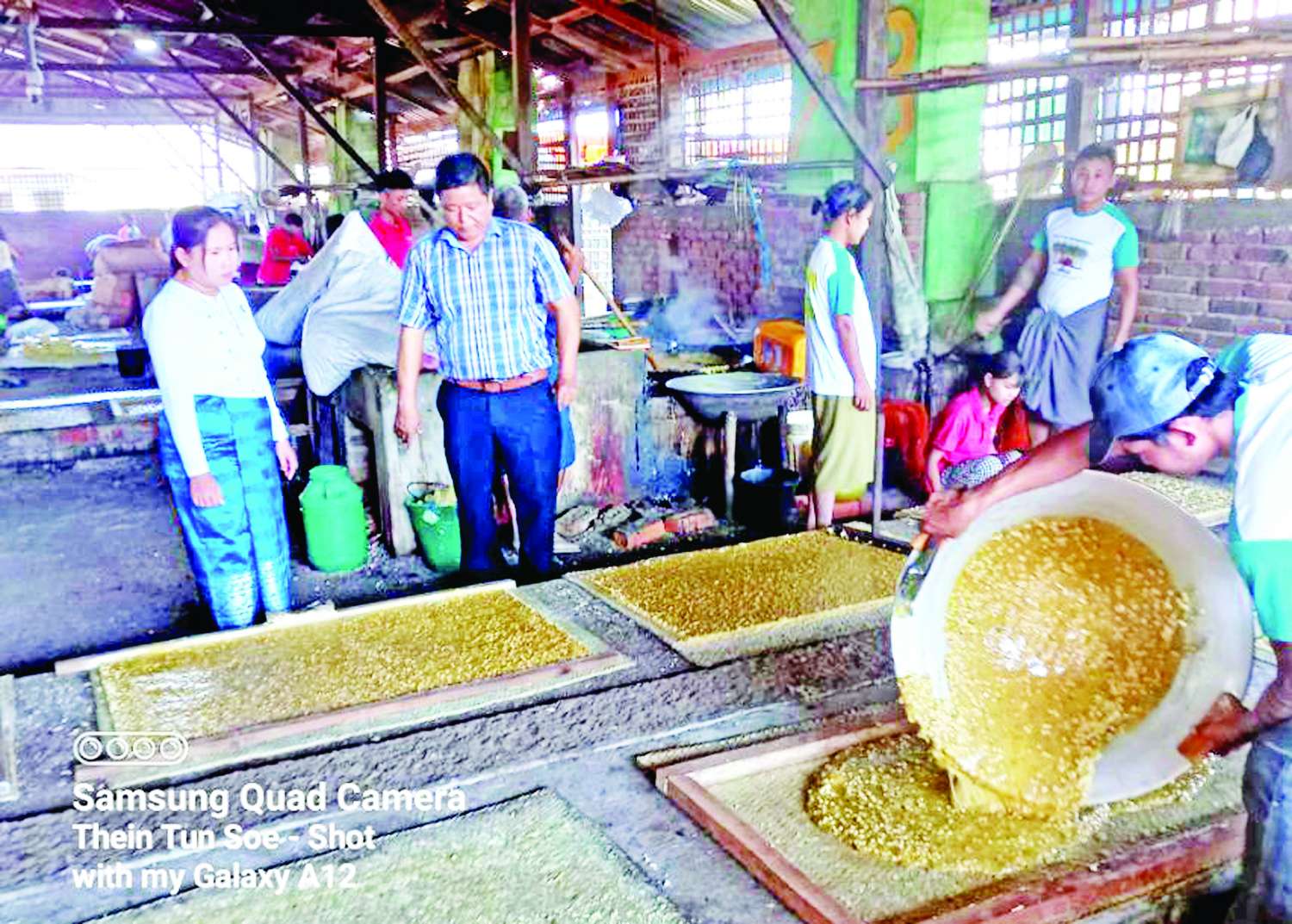 ဖြေ။ ။ ဒေါ်လာလုပ်ငန်းကနေ နှမ်း၊ မြေပဲယို၊ မရွေး၊ မြွေနဂါး ကြံမွနဲ့ ကြံသကာအမျိုးမျိုးဆိုပြီး ခြောက်မျိုး ထုတ်လုပ်ဖြန့်ချိရောင်းချ ပေးလျက်ရှိပါတယ်။ နှမ်း၊ မြေပဲ ကြံသကာက တစ်နေ့ကို ၁၀ ပိဿာကနေ ၁၁ ပိဿာအထိ ရောင်းချရပြီး ပုံးအရေအတွက်ဆိုရင် ပုံး ၆၀၀ ကျော်ကနေ ၇၀၀ အထိ ရောင်းချရပါတယ်။ အခုနှစ်မှာ သကြားကြံသကာကလည်း နှမ်း၊ မြေပဲကြံသကာလို ရောင်းချရပါတယ်။ ဒုတိယရောင်းအားအကောင်းဆုံးကတော့ မရွေးဖြစ်ပြီး မရွေးကိုတော့ စက်နဲ့လုပ်ကိုင်ဆောင်ရွက် ရောင်းချပေးပါတယ်။ မြွေနဂါးကြံမွဆိုရင်လည်း ရောင်းအား အကောင်းဆုံးစာရင်းထဲမှာပါပါတယ်။