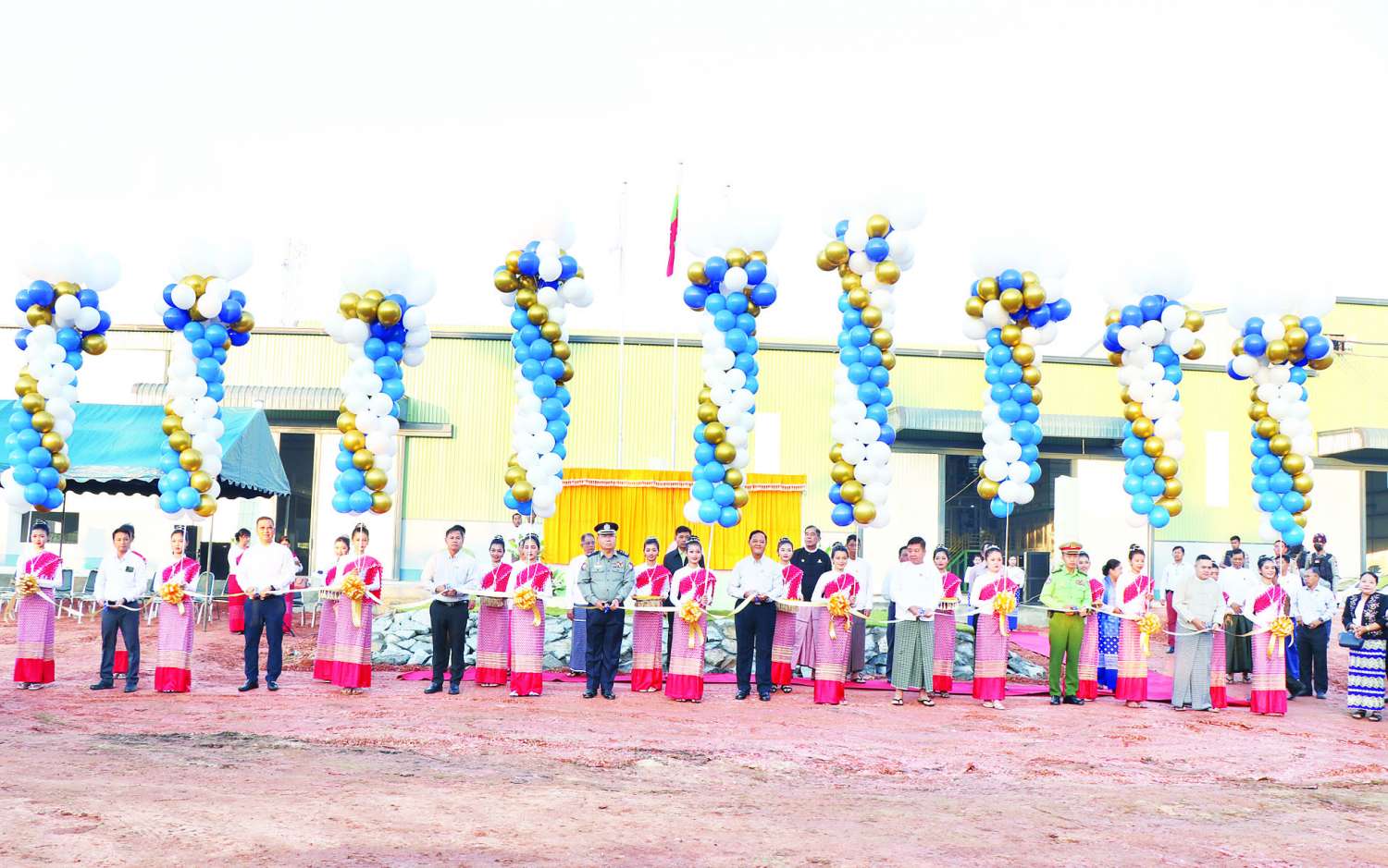 (၇၆) နှစ်မြောက် လွတ်လပ်ရေးနေ့ကို ကြိုဆိုဂုဏ်ပြုသောအားဖြင့် မွန်ပြည်နယ် မော်လမြိုင်မြို့ရှိ ရွှေမြိုင်စိုက်ပျိုးရေးနှင့် အထွေထွေစီးပွားရေးလုပ်ငန်း သမဝါယမအသင်းလီမိတက်၏ တန် ၉၀ ကျ အဆင့်မြင့်ဆန်စက်နှင့် တန် ၁၂၀ ကျ စပါးအခြောက်ခံစက်များ ဖွင့်ပွဲအခမ်းအနားကို ယနေ့နံနက်ပိုင်းတွင် အဆိုပါစက်ရုံများ၌ ကျင်းပသည်။
