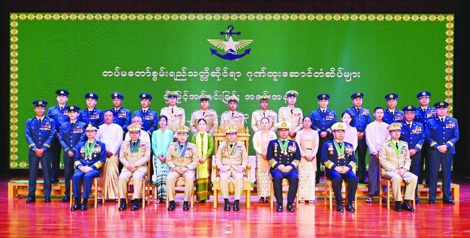 ထို့နောက် နိုင်ငံတော်စီမံအုပ်ချုပ်ရေးကောင်စီဥက္ကဋ္ဌ တပ်မတော်ကာကွယ်ရေးဦးစီးချုပ်နှင့် အဖွဲ့ဝင်များသည် တပ်မတော်စွမ်းရည်သတ္တိဆိုင်ရာ ဂုဏ်ထူးဆောင်တံဆိပ်များရရှိခဲ့သည့် အရာရှိ၊ စစ်သည်များ၊ အမွေခံများနှင့်အတူ စုပေါင်းမှတ်တမ်းတင်ဓာတ်ပုံရိုက်ကြသည်။