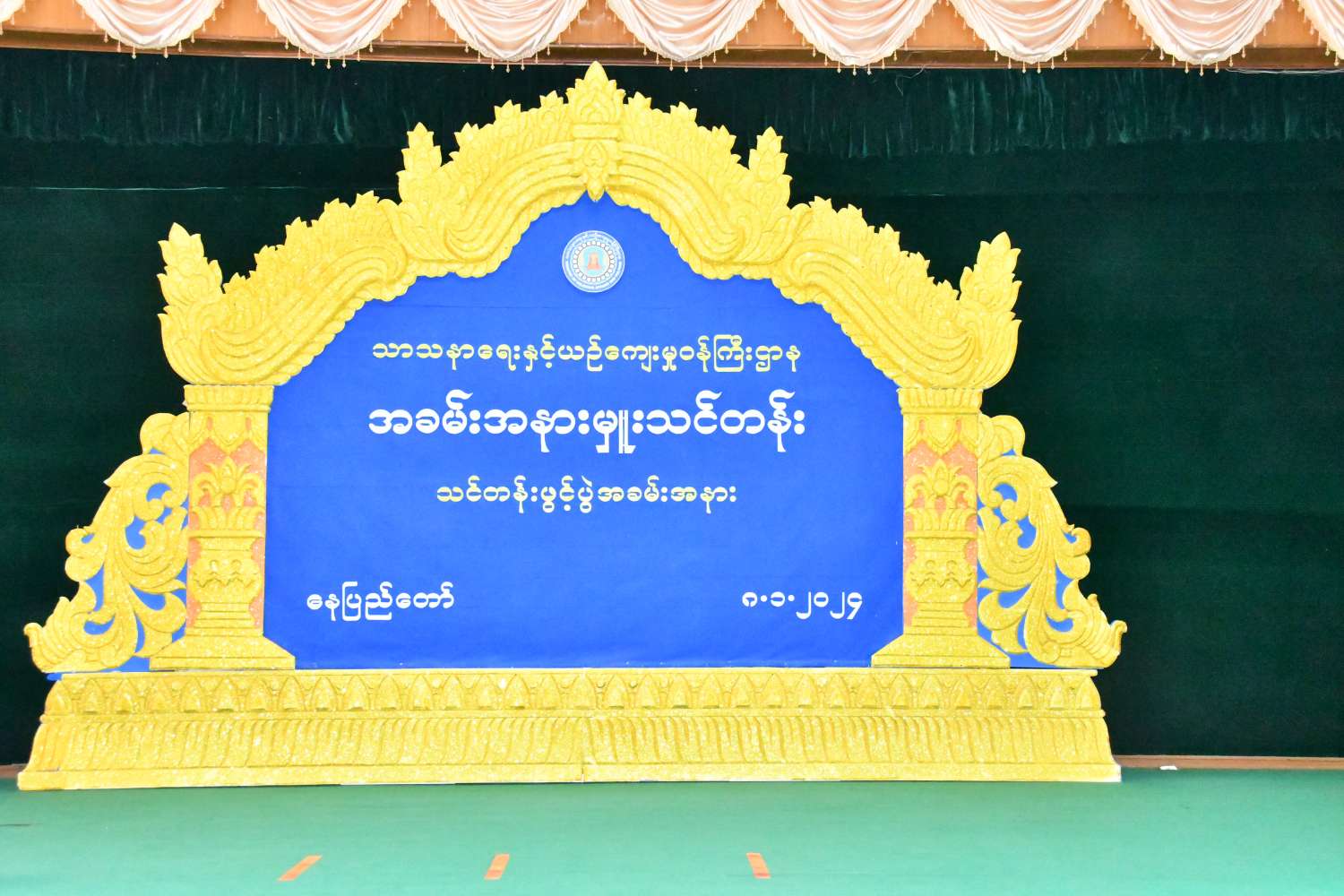 အခမ်းအနားမှူးသင်တန်းကို သာသနာရေးနှင့်ယဉ်ကျေးမှုဝန်ကြီးဌာန၊ ဝန်ကြီးရုံး (သာသနာရေး) မှ သင်တန်းသား ၃ ဦး၊ သာသနာရေးဦးစီးဌာနမှ သင်တန်းသား ၁၃ ဦးနှင့် သာသနာတော်ထွန်းကားပြန့်ပွားရေးဦးစီးဌာနမှ သင်တန်းသား ၁၀ ဦး၊ စုစုပေါင်း သင်တန်းသား ၂၆ ဦး တို့ကို ရက်သတ္တပတ် ၂ ပတ်အကြာ သင်ကြားပို့ချသွားမည်ဖြစ်ကြောင်း သိရသည်။