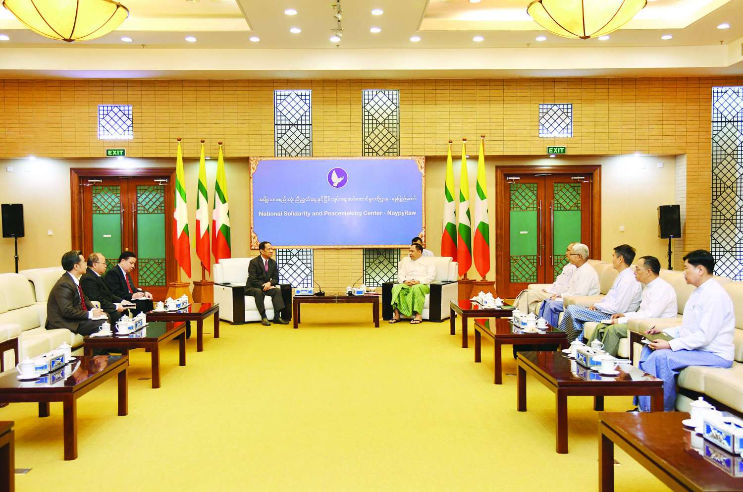 တွေ့ဆုံပွဲသို့ အမျိုးသားစည်းလုံးညီညွတ်ရေးနှင့် ငြိမ်းချမ်းရေးဖော်ဆောင်မှုညှိနှိုင်းရေးကော်မတီအဖွဲ့ဝင် ဒုတိယဗိုလ်ချုပ်ကြီး စိန်ဝင်း (ငြိမ်း)၊ ဒုတိယဗိုလ်ချုပ်ကြီး ဝင်းဗိုလ်ရှိန်၊ သံအမတ်ကြီး(ငြိမ်း) ဦးစံလွင်နှင့် တာဝန်ရှိပုဂ္ဂိုလ်များ တက်ရောက်ကြသည်။