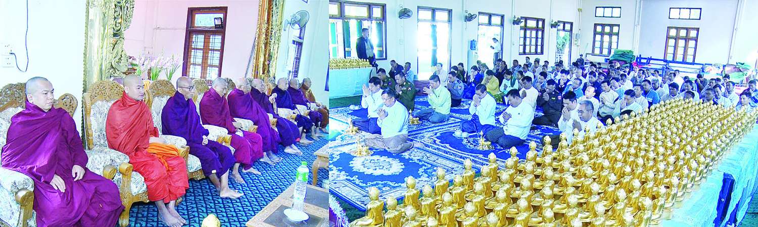 ပြည်ထောင်စုဝန်ကြီးနှင့် တိုင်းဒေသကြီးဝန်ကြီးချုပ်တို့က ဆရာတော်အရှင်သူမြတ်များထံ လှူဖွယ်ဝတ္ထုပစ္စည်းနှင့် နဝကမ္မအလှူငွေများ၊ ဥပ္ပါတသန္တိကျမ်း စာအုပ်များ၊ ဂီရိမာနန္ဒကျမ်းစာအုပ်များကို ဆက်ကပ်လှူဒါန်းပြီး စိတ္တပါလဂူစာသင်တိုက်၊ မြို့နယ်သံဃနာယကအဖွဲ့ဥက္ကဋ္ဌ အဂ္ဂမဟာဂန္ထဝါစကပဏ္ဍိတ ဘဒ္ဒန္တသုမနဓဇထံမှ ရေစက်ချတရား နာယူကြည်ညိုကြသည်။