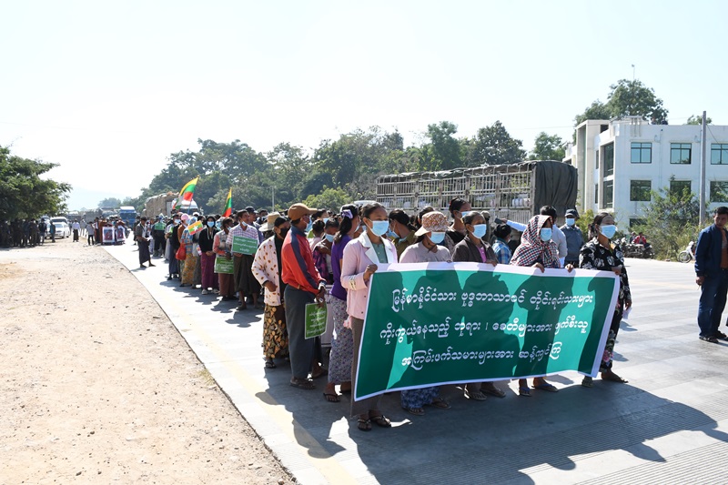 အဆိုပါရှုတ်ချပွဲတွင် သံဃာတော်များနှင့် ပြည်သူစုစုပေါင်း (၉၉၀) ဦးတို့က ကျောက်ဆည်မြို့ မြောက်ဘက် ရန်ကုန်-မန္တလေးမြို့ရှောင်လမ်းဆုံမှ စုရပ်အဖြစ်စတင်ပြီး ရန်ကုန်-မန္တလေးကားလမ်းမကြီးအတိုင်း သင်တောင်းကျေးရွာ ဆုတောင်းပြည့်မဟာရွှေသိမ်တော်ဘုရားအထိ တန်းစီလမ်းလျှောက်ခဲ့ပြီး နိုင်ငံတော်အလံနှင့်သာသနာတော်အလံများကို ကိုင်ဆောင်ကာ “ပြည်ပဩဇာခံ ပြည်ပမိစ္ဆာများ အလိုမရှိ၊ “အမျိုးဘာသာသာသနာအား ဖျက်ဆီးသည့် အကြမ်းဖက်အဖွဲ့များအား အလိုမရှိ၊ “အချုပ်အခြာအာဏာကို ထိပါးစော်ကားလာသော ပြည်ဖျက်မိစ္ဆာများအား ဆန့်ကျင်ကြ၊ “လူမျိုးရေးခွဲခြားသာသနာကို စော်ကား ဖျက်ဆီး နေသူများအား ဆန့်ကျင်ကြ၊ “အမျိုးဘာသာသာသနာအား စော်ကားဖျက်ဆီးသည့် အကြမ်းဖက်အဖွဲ့အား ချေမှုန်းကြ” စသည့် စာတန်းများပါသည့် ဗီနိုင်းများကိုင်ဆောင်၍ ကြွေးကြော်ကာ လှည့်လည်ကန့်ကွက် ရှုတ်ချခဲ့ကြောင်း၊ ကန့်ကွက်ရှုတ်ချပွဲကို ဦးဆောင်သူများက အသီးသီး ဟောပြောခဲ့ကြပြီးနောက် အမျိုးသားရေးသီချင်းများ ဖွင့်လှစ်သီဆိုကာ အခမ်းအနားကို ရုပ်သိမ်းခဲ့ကြောင်းသိရသည်။