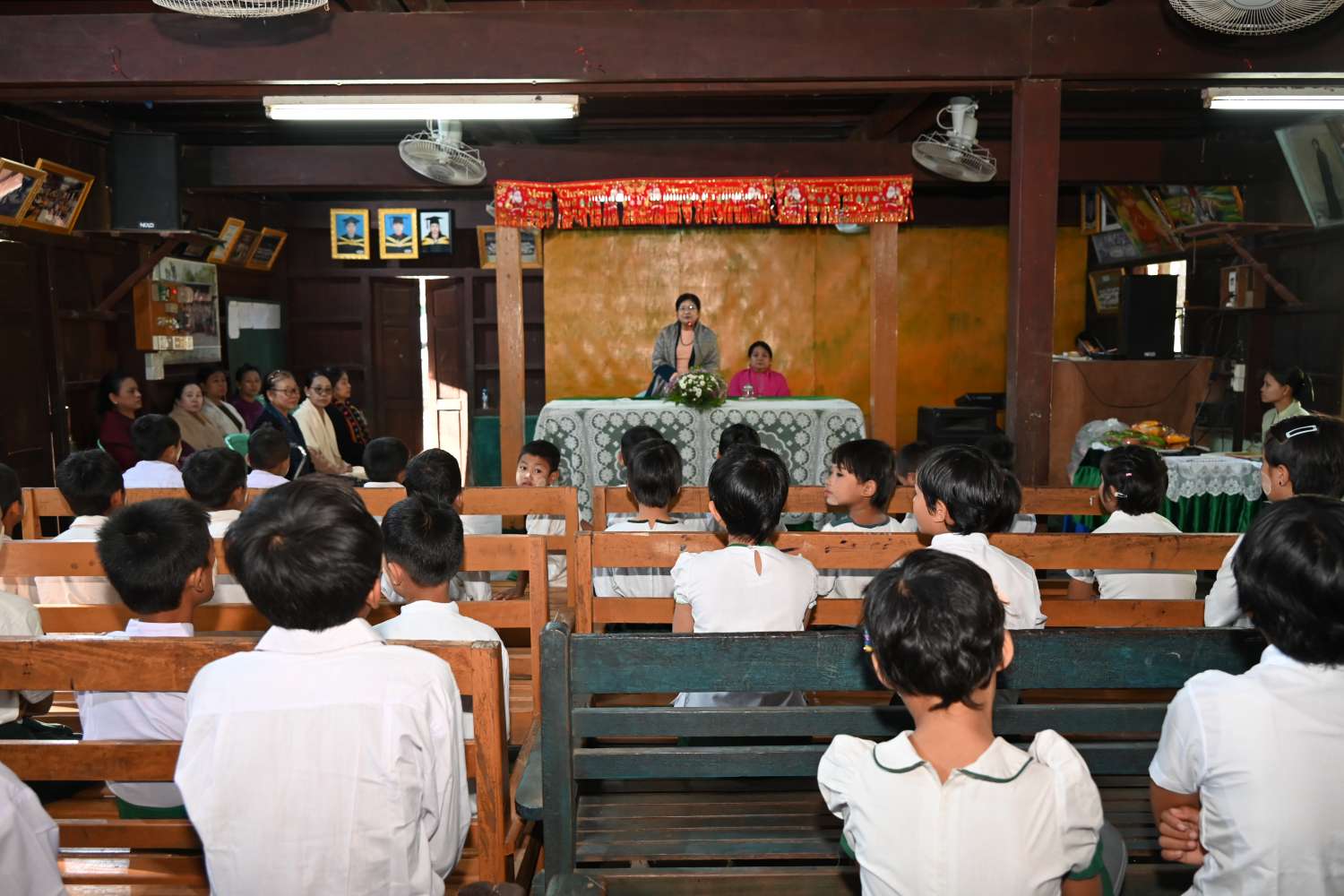 ထို့နောက် နိုင်ငံတော်စီမံအုပ်ချုပ်ရေးကောင်စီအဖွဲ့ဝင်နှင့် ပြည်နယ်ဝန်ကြီးချုပ်၏ဇနီးတို့က ကျောင်းအတွက်ထောက်ပံ့ငွေကျပ် ၁၀ သိန်းကို ထောက်ပံ့ပေးအပ်ရာ ကျောင်းအုပ်ကြီးက ကျေးဇူးတင်စကားပြန်လည်ပြောကြားပြီး ကျောင်းသားကလေးများက တေးသီချင်းများဖြင့် သီဆိုဖျော်ဖြေခဲ့ ကြသည်။