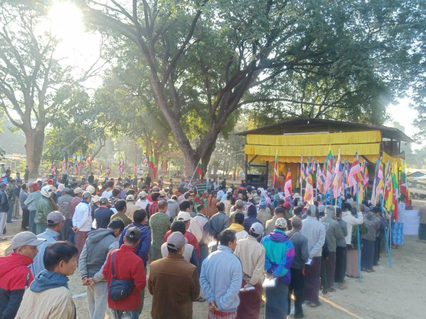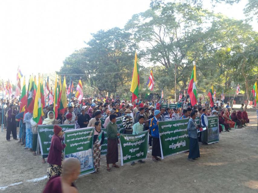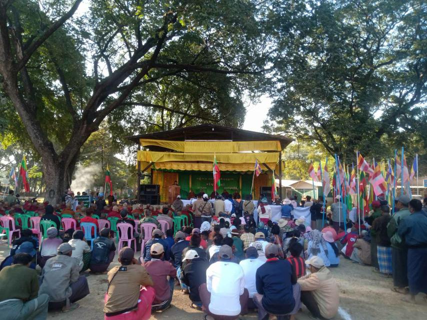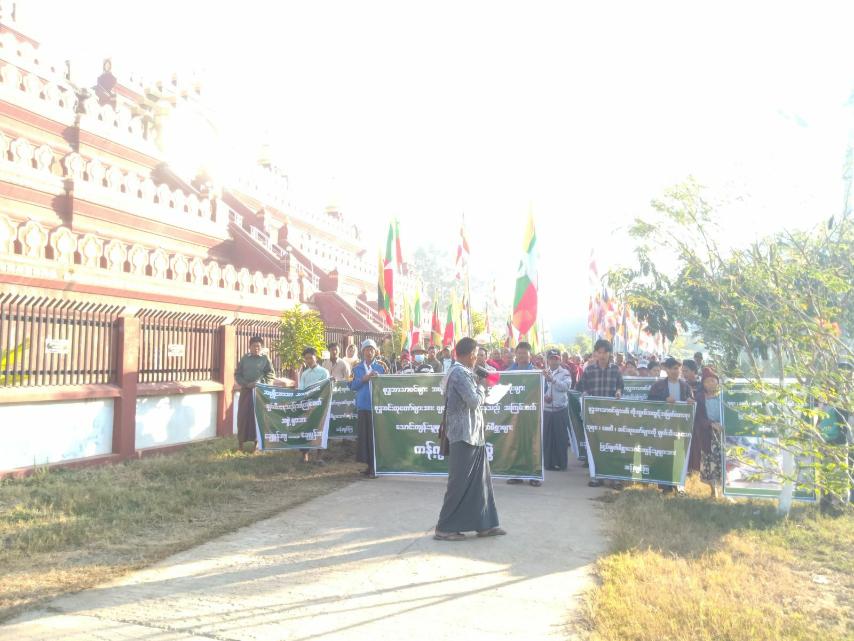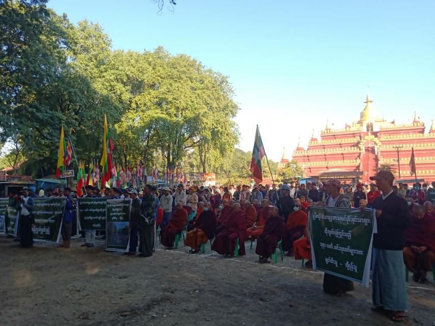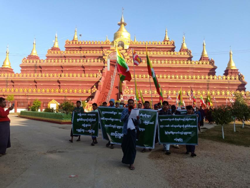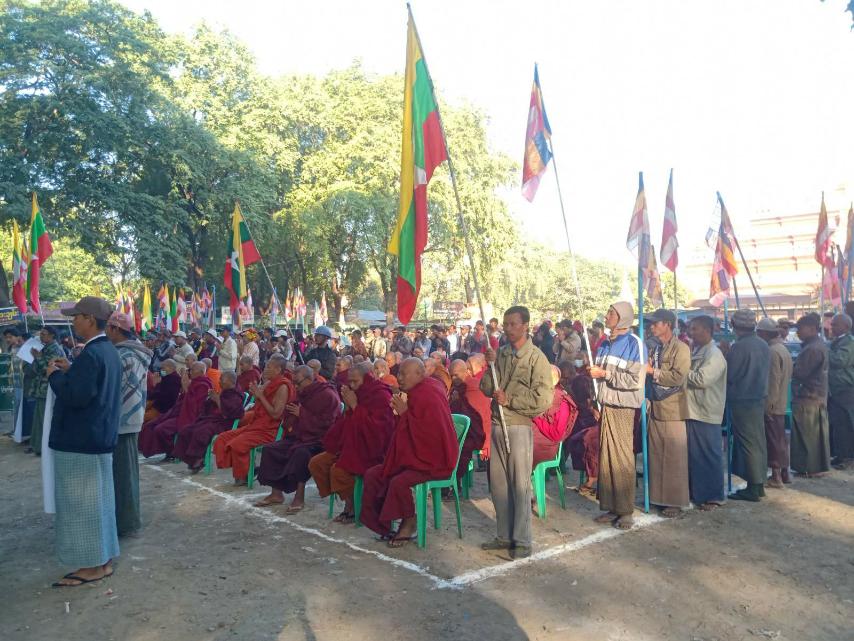ရှေးဦးစွာ ဆရာတော်သံဃာတော်များနှင့် ပြည်သူစုစုပေါင်း (၃၀၀)ဦးခန့်က တောင်တွင်းကြီးမြို့ အောင်မြင်ဇေယျ(ရခိုင်)စေတီတော်မြတ်ကြီး ပရ၀ဏ်၌လှည့်လည်ကာ “သာသနာကို ဖျက်ဆီးနေသော အကြမ်းဖက်သူပုန်များအား ရှင်းလင်းရေး” ၊ “ဗုဒ္ဓသာသနာအား စော်ကားဖျက်စီးနေသော အကြမ်းဖက်သူပုန်မှန်သမျှ ဆန့်ကျင်ကြ” ၊ “ဘုရားစေတီများအားဖျက်ဆီးနေသည့် လူသတ်အကြမ်းဖက် သူပုန်မှန်သမျှ ကျဆုံးပါစေ” စသည့်စာသားများ ပါဝင်သည့် ဗီနိုင်းများကိုင်ဆောင်၍ ကြွေးကြော်ကာ ကန့်ကွက်ရှုတ်ချခဲ့ကြသည်။