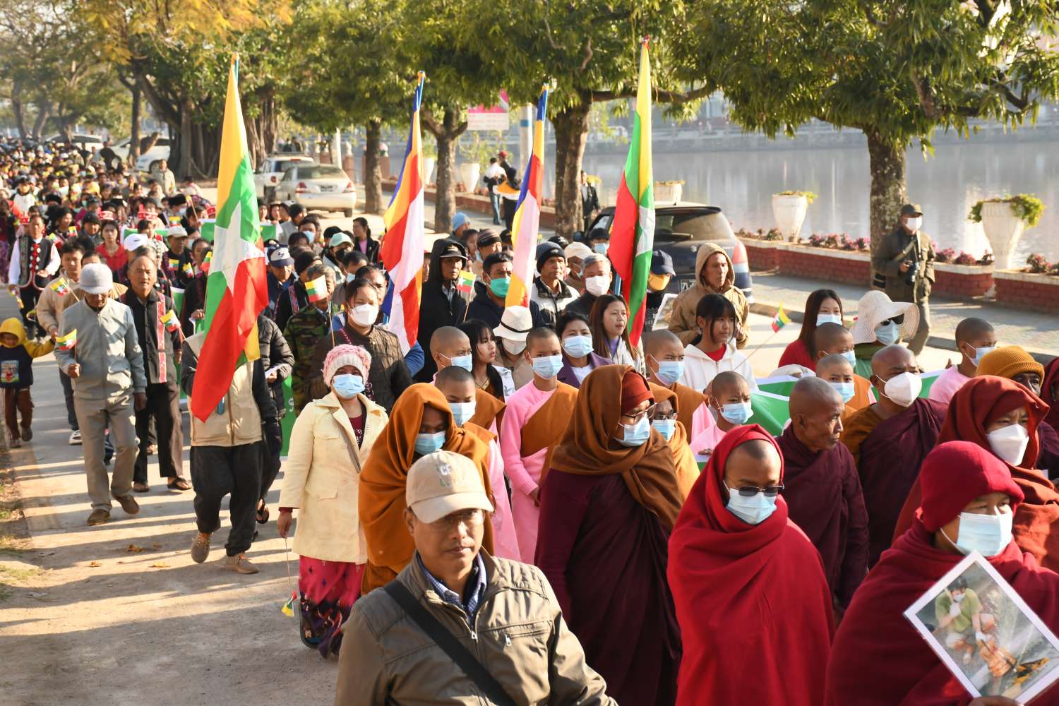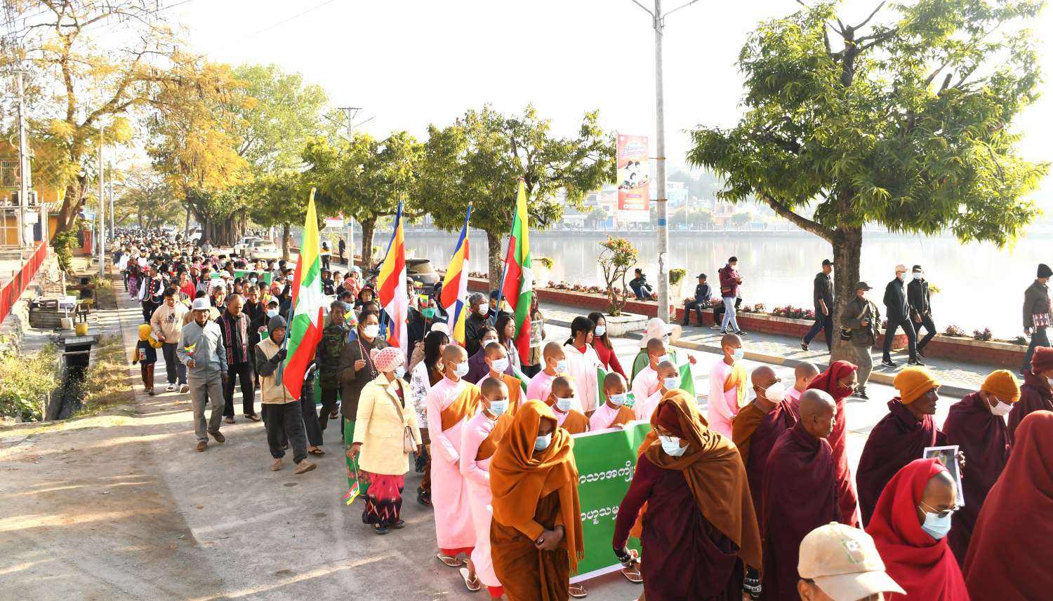 အကြမ်းဖက်သောင်းကြမ်းသူများက ဗုဒ္ဓဘာသာအပေါ် ဖျက်ဆီးရန်လုပ်ဆောင်နေမှုများ၊ ဘုရားစေတီ ပုထိုးများ၊ ဗုဒ္ဓဆင်းတုတော်များအား ဖျက်ဆီးစော်ကားနေသည့် အကြမ်းဖက်သောင်း ကျန်းသူများအား ကန့်ကွက်ရှုတ်ချပွဲကို ဇန်နဝါရီ ၁၃ ရက် နံနက် ၈ နာရီက ကျိုင်းတုံမြို့မအားကစားကွင်း၌ ပြုလုပ်သည်။