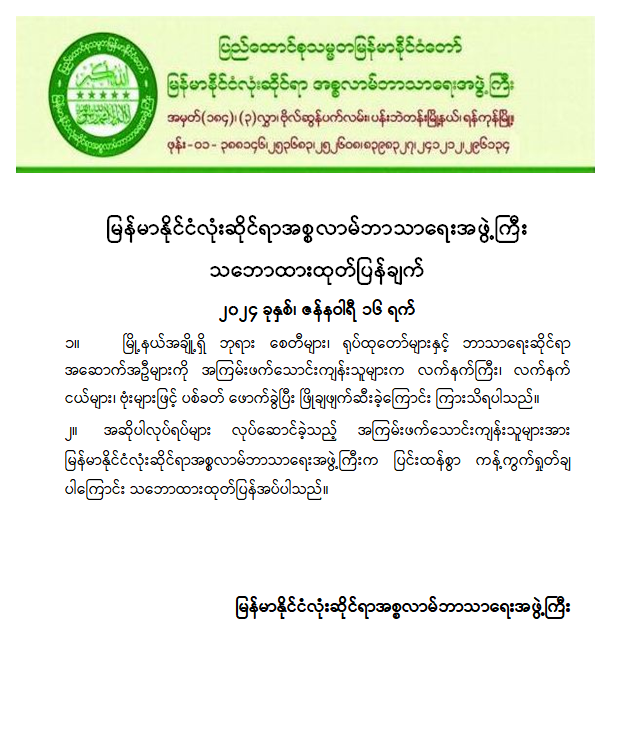 ၂။ အဆိုပါလုပ်ရပ်များ လုပ်ဆောင်ခဲ့သည့် အကြမ်းဖက်သောင်းကျန်းသူများအား မြန်မာနိုင်ငံလုံးဆိုင်ရာအစ္စလာမ်ဘာသာရေးအဖွဲ့ကြီးက ပြင်းထန်စွာ ကန့်ကွက်ရှုတ်ချ ပါကြောင်း သဘောထားထုတ်ပြန်အပ်ပါသည်။