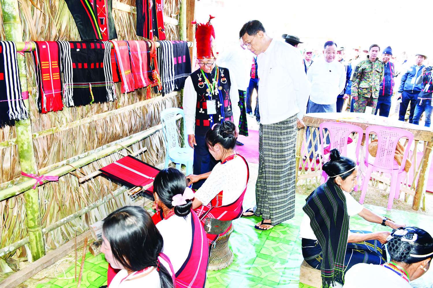 နာဂဒေသအတွင်း စိုက်ပျိုးရေး၊ မွေးမြူရေးလုပ်ငန်းများအပြင် MSME လုပ်ငန်းများ ဖွံ့ဖြိုးတိုးတက်စေရေးအတွက် ကုန်ကြမ်းသွင်းအားစု၊ အရင်းအနှီးနှင့် လူသားအရင်းအမြစ်များ ပြည့်စုံစေရေးဆောင်ရွက်၍ နိုင်ငံ့စီးပွားမြှင့်တင်ရေး မတည်ရန်ပုံငွေမှ ချေးငွေများရရှိရေး ဆောင်ရွက်ပေးလျက်ရှိကြောင်း၊ ဒေသခံပြည်သူများအား အလုပ်အကိုင် အခွင့်အလမ်းများ ဖန်တီးပေးပြီး လူမှုစီးပွားဘဝများ ဖွံ့ဖြိုးတိုးတက်ရေးအတွက် ဆောင်ရွက်ပေးလျက်ရှိကြောင်း၊ ဒေသအတွင်း စီးပွား ဖွံ့ဖြိုးတိုးတက်ရေးအတွက် ကုန်ထုတ်လုပ်ငန်းများကို ဒေသတစ်ခု ထုတ်ကုန်တစ်ခုဖြစ်အောင် ကြိုးပမ်းဆောင်ရွက်ရန်နှင့် ရိုးရာချည်ထည်လုပ်ငန်းများ စနစ်တကျ တိုးမြှင့်ထုတ်လုပ်နိုင်ရေးကိုလည်း ကြိုးပမ်းဆောင်ရွက် ကြရမည်ဖြစ်ကြောင်း၊ နာဂရိုးရာနှစ်သစ်ကူးပွဲတော်မှသည် တိုင်းရင်းသားအချင်းချင်း စည်းလုံးညီညွတ်ရေးကို ဆက်လက်ဆောင်ရွက်၍ နိုင်ငံတော်သစ်ကို ပြည် ထောင်စု တိုင်းရင်းသားအားလုံးနှင့်အတူ လက်တွဲညီညီ ချီတက်သွားကြရန် တိုက်တွန်းပြောကြားသည်။