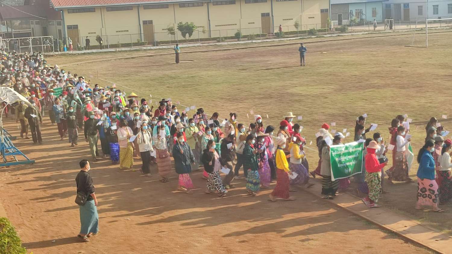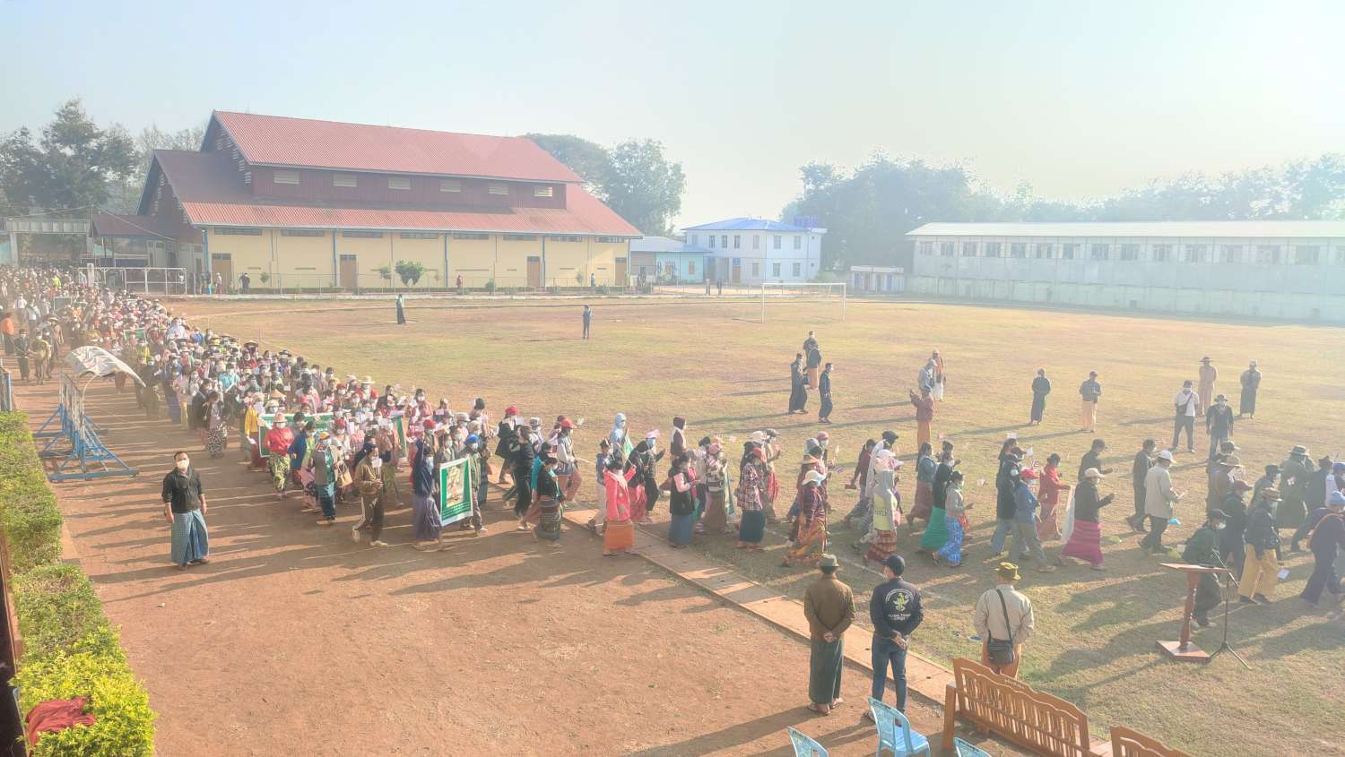 အဆိုပါပွဲအား မြို့နယ်အတွင်းရှိ ပြည်သူလူထုစုပေါင်းအင်အား (၈၂၀) ဦးတို့ဖြင့် မြို့နယ်နွယ်ဝတီခန်းမရှေ့မှ စတင်ကာ မြို့တွင်းလမ်းအတိုင်း ကြွေးကြော်သံများဖြင့် ငြိမ်းချမ်းစွာ လှည့်လည်ဆန္ဒဖော်ထုတ်ခဲ့ကြသည်။ ဆက်လက်၍ မြို့နယ်အားကစားကွင်းတွင် သံဃာတော်များ ပရိတ်တရားရွတ်ခြင်း၊ ပြည်သူတစ်ဦးက အဆိုပါရှုတ်ချကန့်ကွက်ဆန္ဒဖော်ထုတ်ပွဲ ပြုလုပ်ရခြင်းများနှင့် ပတ်သက်၍ ဟောပြောခဲ့သည်။