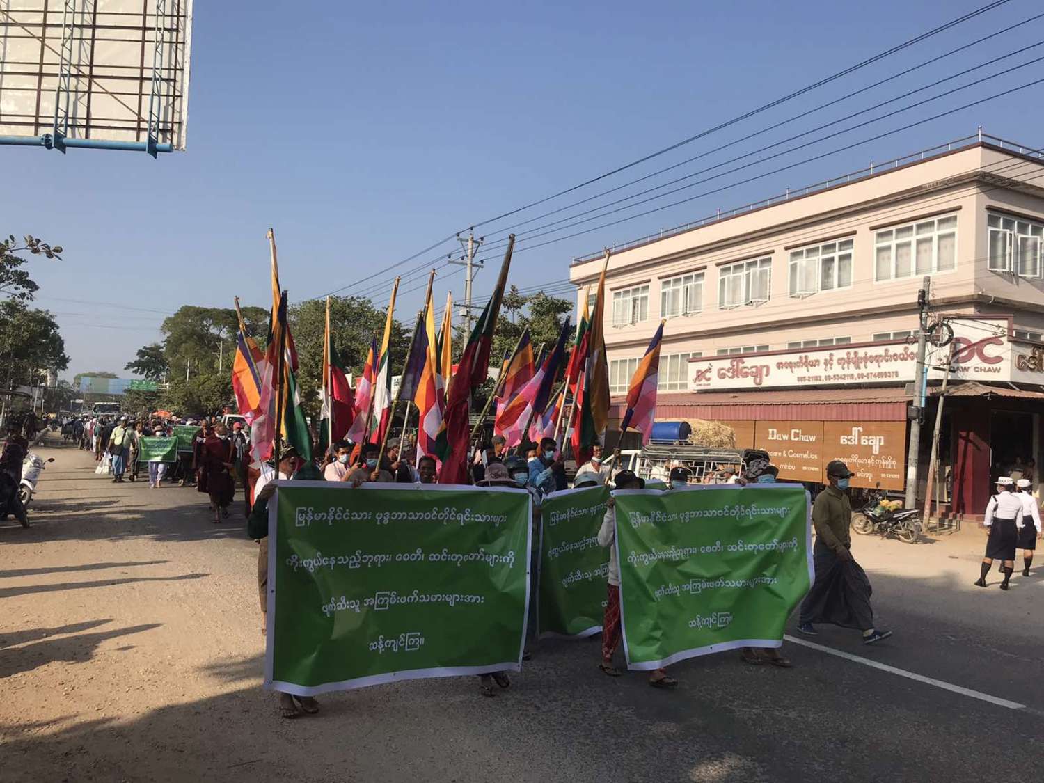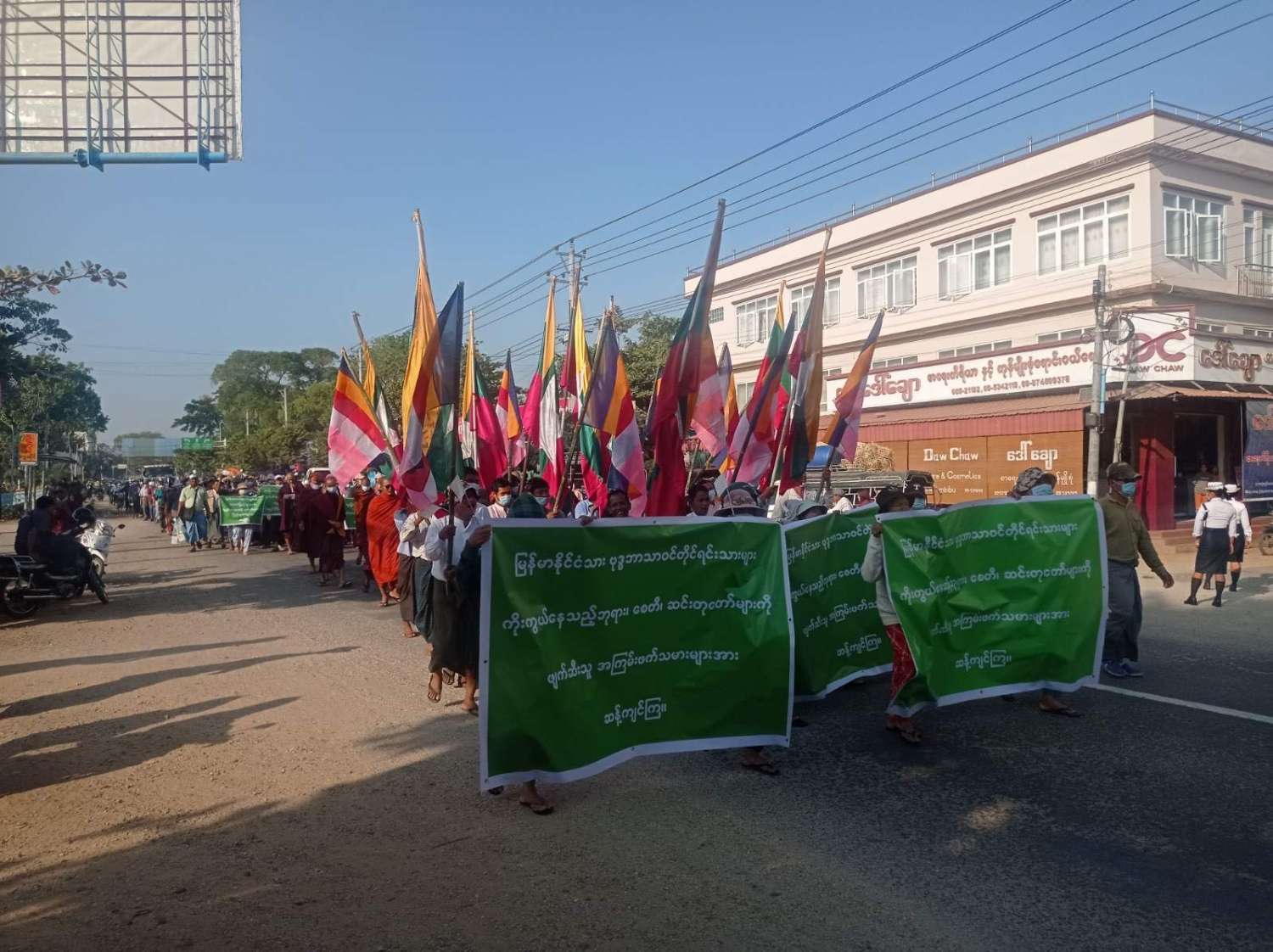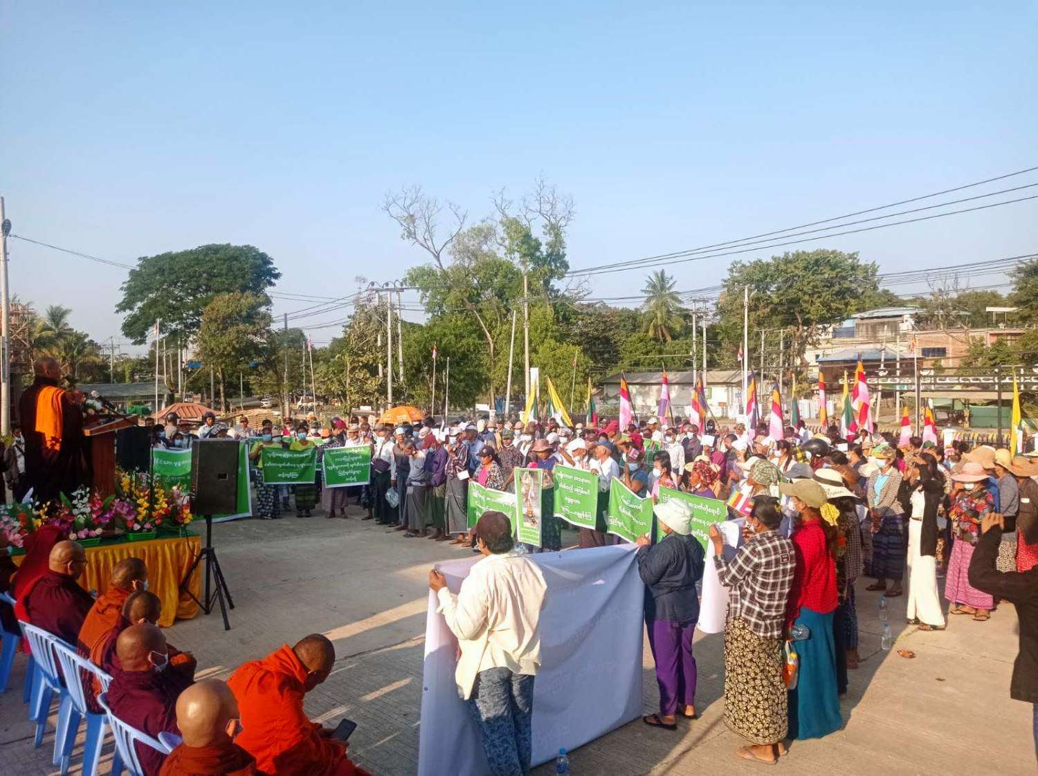 ထို့နောက် ကန့်ကွက်ရှုတ်ချပွဲသို့ တက်ရောက်လာကြသူများက မြန်မာနိုင်ငံသား ဗုဒ္ဓဘာသာဝင် တိုင်းရင်းသားများ ကိုးကွယ်နေသည့် ဘုရား၊ စေတီများအား ဖျက်ဆီးသူအကြမ်းဖက်သမားများအား (ဆန့်ကျင်ကြ)၊ ဗုဒ္ဓဘာသာဝင်များ၏ ကိုးကွယ်အထွဋ်အမြတ်ထားရာ ဘုရား၊ စေတီ၊ ဆင်းတုတော်များကို ဖျက်ဆီးနေသော ပြည်ဖျက်မိစ္ဆာသောင်းကျန်းသူများအား (ဆန့်ကျင်ကြ) စသည့် ကြွေးကြော်သံများ၊ ဆိုင်းဘုတ်များကို ကိုင်ဆောင်၍ ငြိမ်းချမ်းစွာ ဆန္ဒထုတ်ဖော်ခဲ့ကြကြောင်း သိရသည်။
