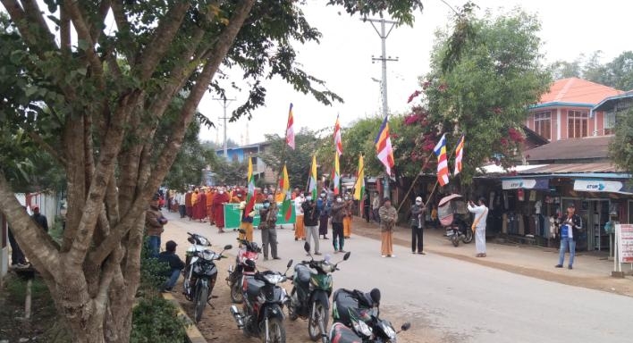 ဆက်လက်၍ မြို့လယ်အားကစားကွင်းတွင် ဦးဆောင်သူဆရာတော်နှင့် ပြည်သူတစ်ဦးက အဆိုပါရှုတ်ချကန့်ကွက်ဆန္ဒဖော်ထုတ်ပွဲ ပြုလုပ်ရခြင်းများနှင့်ပတ်သက်၍ ဟောပြောခဲ့သည်။ ယင်းနောက်တက်ရောက်လာကြသူအားလုံးက ဗုဒ္ဓသာသနာအား အကြမ်းဖက်ဖျက်ဆီးနေသည့် လူသတ်မိစ္ဆာသူပုန်များအား ရှင်းလင်းရေး၊ ဘုရားစေတီဆင်းတုတော်များအား ဖျက်ဆီးသူ ဒို့ရန်သူစသည့်ကြွေးကြော်သံများနှင့်အတူ နိုင်ငံတော်အလံ၊ သာသနာအလံများ ကိုင်ဆောင်လျက် ဆန္ဒဖော်ထုတ်ခဲ့ကြကြောင်း သိရသည်။