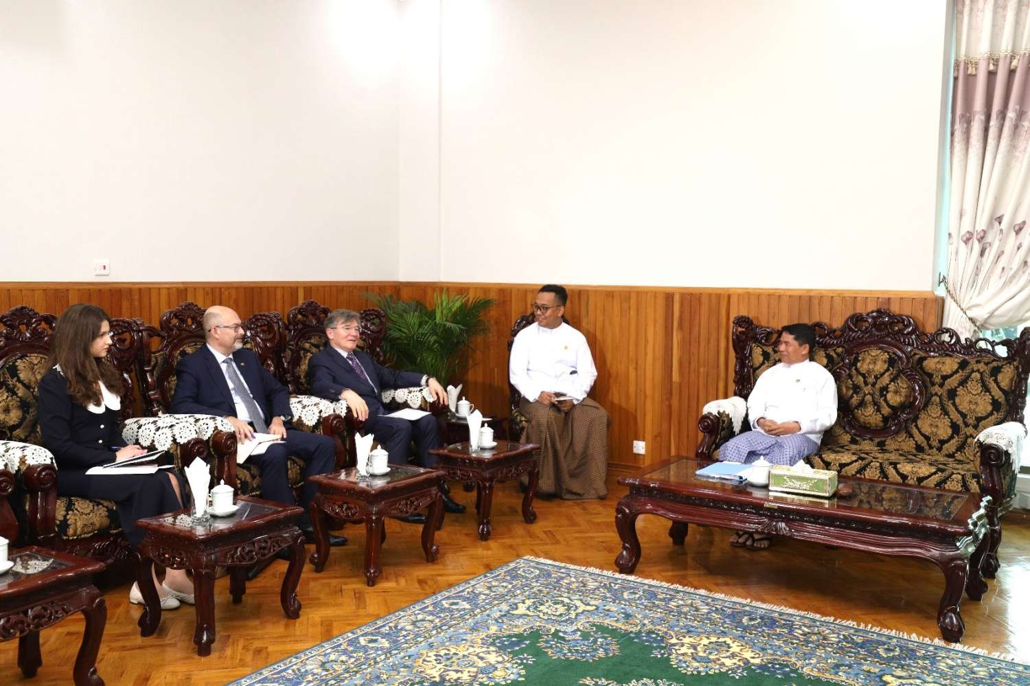 မြန်မာနိုင်ငံဆိုင်ရာ ရုရှားသံအမတ်ကြီးနှင့်တွေ့ဆုံစဉ် မြန်မာ-ရုရှား နှစ်နိုင်ငံအကြား ငါးလုပ်ငန်း ပူးပေါင်းဆောင်ရွက်မှုဆိုင်ရာ နားလည်မှုစာချွန်လွှာ လက်မှတ်ရေးထိုးရေး နှစ်ဖက်ညှိနှိုင်းဆောင်ရွက်နေမှု၊ တတိယအကြိမ် ရုရှား−မြန်မာ အစိုးရအချင်းချင်း ကုန်သွယ်မှုနှင့် စီးပွားရေးပူးပေါင်းဆောင်ရွက်မှုကော်မရှင်အစည်းအဝေး၏ သဘောတူညီမှုများအား ပူးပေါင်းဆောင်ရွက်နေမှု၊ မြန်မာနိုင်ငံနှင့် ရုရှားဖက်ဒရေးရှင်းနိုင်ငံတို့အကြား စားရေရိက္ခာဖူလုံရေးဆိုင်ရာ ဆက်စပ်ဆွေးနွေးပွဲရလဒ်မှ နှစ်နိုင်ငံပူးပေါင်းဆောင်ရွက်လိုသည့် ဦးစားပေးလုပ်ငန်းများ၊ မြန်မာနိုင်ငံတွင် သဘာဝအပင်ကြီးထွားဆေးစက်ရုံ တည်ဆောက်ရန်ကိစ္စရပ်၊ မြန်မာ့ ရေ၊ မြေ၊ ရာသီ ဥတု၊ သီးနှံလိုအပ်ချက်နှင့် ကိုက်ညီမှုရှိသည့် ဓာတ်မြေဩဇာများ ရုရှားနိုင်ငံမှ တင်သွင်းနိုင်ရေးနှင့် ဆန်နှင့်ပဲမျိုးစုံ အပါအဝင် မြန်မာ့လယ်ယာထွက်ကုန်များအတွက် ဈေးကွက်အခွင့်အလမ်းရရှိရေး ပူးပေါင်းဆောင်ရွက်ရန်ကိစ္စရပ်များကို ရင်းနှီးပွင့်လင်းစွာ ဆွေးနွေးကြသည်။