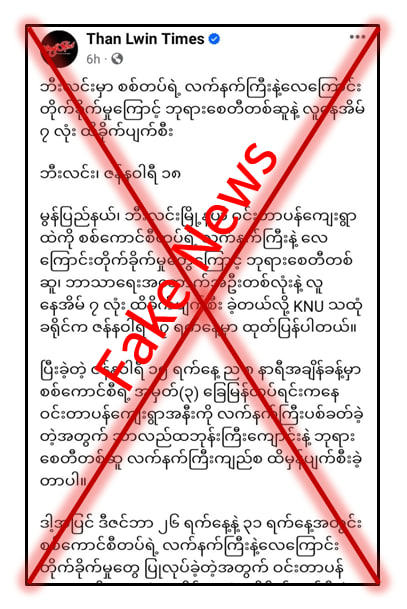 အလားတူ မွန်ပြည်နယ်၊ သိမ်ဇရပ်မြို့နယ်၊ သုံးခွကျေးရွာအတွင်း ဇန်နဝါရီလ ၁၆ ရက်နေ့ ည ၆ နာရီခွဲ အချိန်ခန့်က တပ်မတော်မှလက်နက်ကြီးဖြင့် ပစ်ခတ်ခဲ့သည့်အတွက် ပြည်သူ ၂ ဦး ထိခိုက်ဒဏ်ရာရရှိခဲ့ကြောင်း သတင်းတု၊ သတင်းမှားများကို အကြမ်းဖက်အားပေး ပြည်ဖျက်မီဒီယာများက လူမှုကွန်ရက်ပေါ်တွင် ရေးသားဖြန့်ဝေနေသည်ကိုတွေ့ရှိရပြီး သက်ဆိုင်ရာ နယ်မြေလုံခြုံရေးဆိုင်ရာ တာဝန်ရှိသူတစ်ဦး၏ ပြောကြားချက်အရ ၁၆ ရက်နေ့တွင် သိမ်ဇရပ်မြို့နယ်အတွင်း ပစ်ခတ်မှု၊ တိုက်ပွဲဖြစ်ပွားမှုများ မရှိခဲ့ကြောင်း သိရှိရပါသည်။