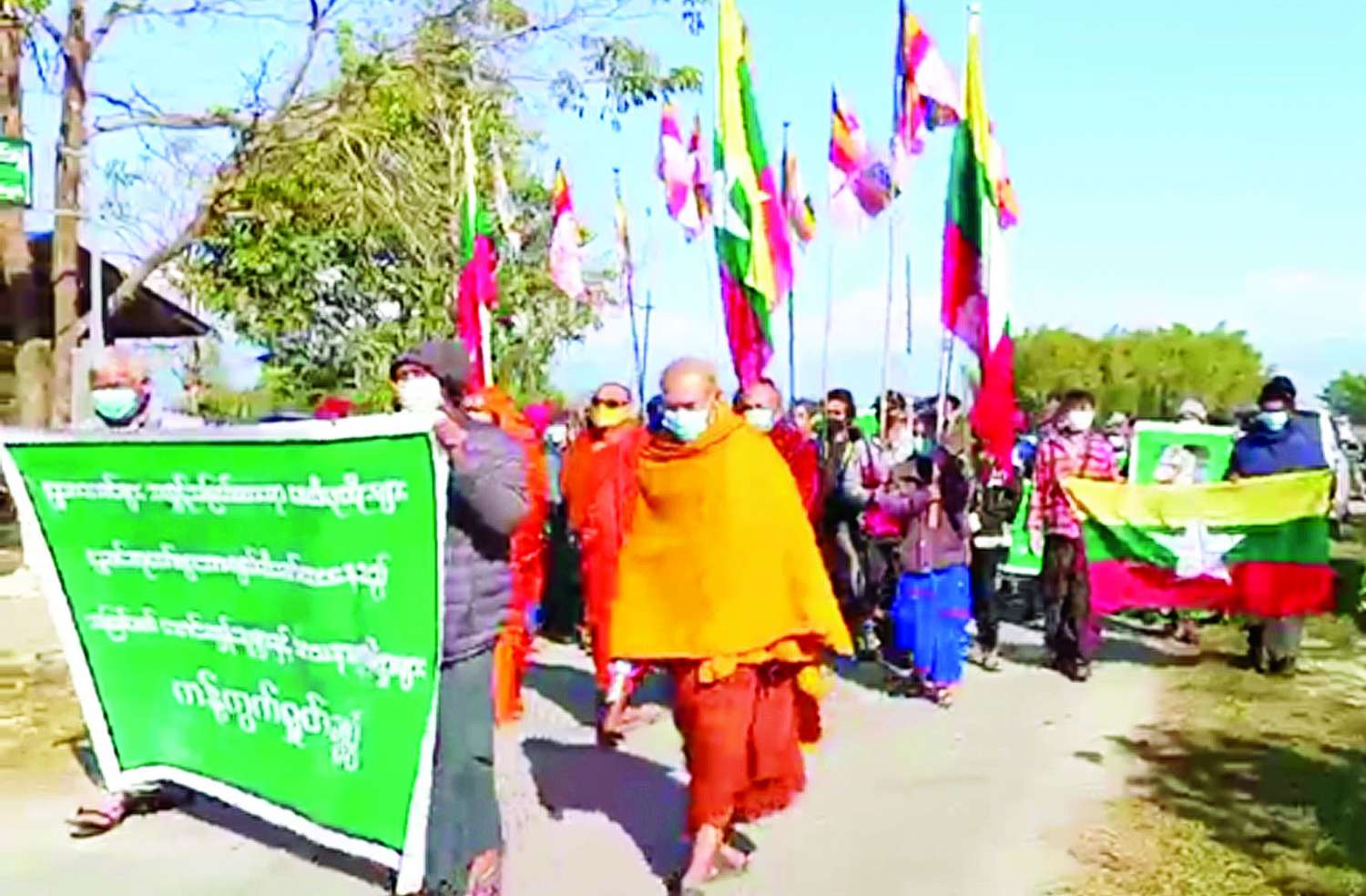 အကြမ်းဖက်သောင်းကျန်းသူများက ဘုရားစေတီပုထိုးများ၊ ဗုဒ္ဓဆင်းတုတော်များအား ဖျက်ဆီးစော်ကားမှုအား ကန့်ကွက်ရှုတ်ချပွဲများကို တိုင်းဒေသကြီးနှင့် ပြည်နယ်အသီးသီး၌ ကျင်းပပြုလုပ်လျက်ရှိရာ ယနေ့တွင် ကချင်ပြည်နယ် ပူတာအိုမြို့၌ ကျင်းပပြုလုပ်ကြသည်။