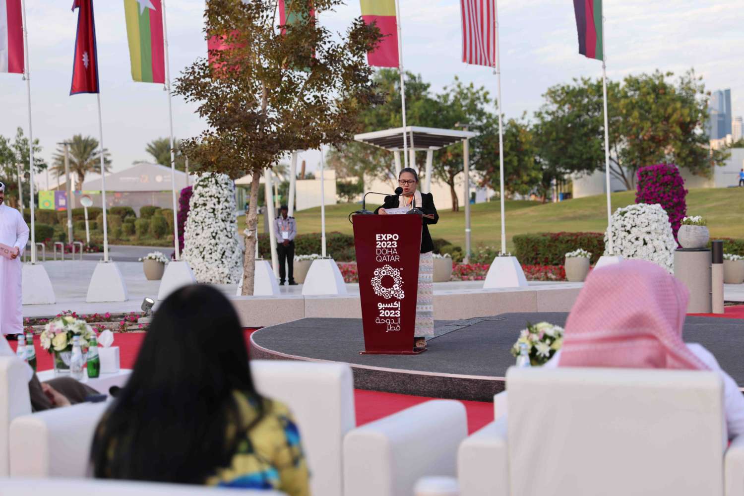Expo 2023 Doha ကို ၂၀၂၃ ခုနှစ်၊ အောက်တိုဘာ ၁ ရက်မှ ၂၀၂၄ ခုနှစ်၊ မတ် ၃၁ ရက်အထိ ၆ လကြာ ကျင်းပလျက်ရှိပြီး ပြပွဲကာလအတွင်း မြန်မာပြခန်းဆောင်ကို TREASURE CAP Company မှ မြန်မာနိုင်ငံကိုယ်စားပြု ပါဝင်ပြသလျက်ရှိကြောင်းနှင့် မြန်မာပြခန်း၌ မြန်မာ့စိုက်ပျိုးရေးထွက်ကုန်များ၊ ကျောက်မျက်ရတနာပစ္စည်းများ၊ မြန်မာ့သဘာဝမျိုးရင်း သစ်ခွများနှင့် ရေထွက်ကုန်ပစ္စည်းများ ပြသလျက်ရှိကြောင်း သိရသည်။