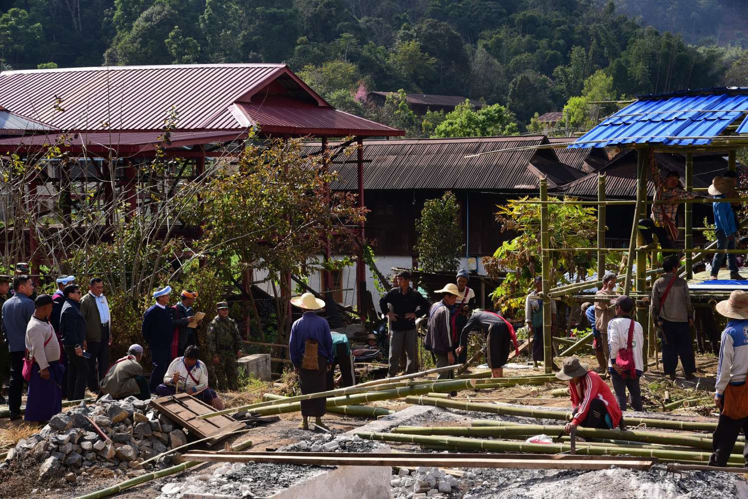 ထို့နောက် နိုင်ငံတော်စီမံအုပ်ချုပ်ရေးကောင်စီအဖွဲ့ဝင် ခွန်စံလွင်၊ ပြည်နယ်ဝန်ကြီးချုပ်၊ ပြည်နယ်ဝန်ကြီးများနှင့် တာဝန်ရှိသူတို့သည် စံဖူးကျေးရွာမှ မီးဘေးသင့်ပြည်သူများ၏ နေအိမ်များ ပြန်လည်တည်ဆောက်နေမှုကို လှည့်လည်ကြည့်ရှုကြသည်။