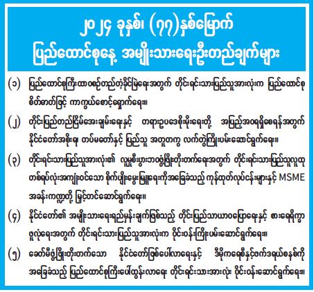 ရန်ကုန်မြို့နှင့် မန္တလေးမြို့အတွက် ရည်ညွှန်းလက်ကားဈေးနှုန်းများနှင့် ပြည်ထောင်စုနယ်မြေ နေပြည်တော်၊ တိုင်းဒေသကြီး/ပြည်နယ် မြို့တော်များအတွက် ရည်ညွှန်းလက်လီဈေးနှုန်းများ