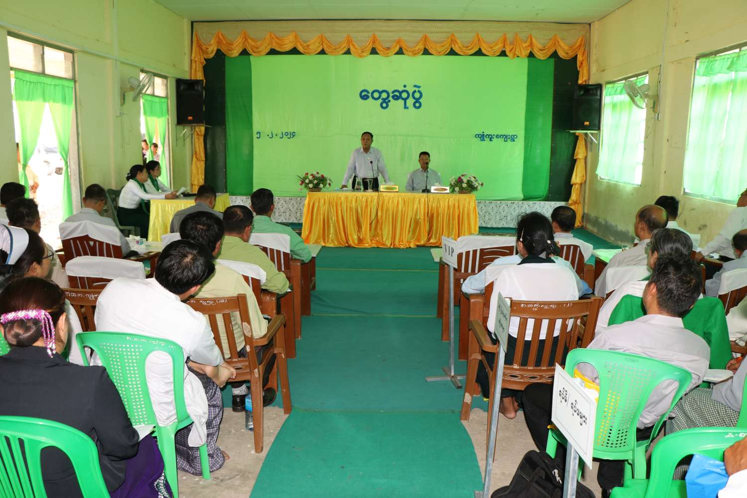 ဦးစွာ ပြည်ထောင်စုဝန်ကြီး၊ တိုင်းဒေသကြီးဝန်ကြီးချုပ်နှင့်အဖွဲ့သည် ငပုတောမြို့နယ်၊ ကျုံကူးကျေးရွာသို့ ရောက်ရှိပြီး ကျေးရွာအခြေခံပညာအထက်တန်းကျောင်း၌ ကျေးရွာအုပ်စု ၁၂ အုပ်စု၊ ကျေးရွာ ၅၁ ရွာမှ အုပ်ချုပ်ရေးမှူးများ၊ ကျေးရွာရပ်မိရပ်ဖများ၊ ဒေသခံပြည်သူများ၊ ကျေးရွာ ၁၄ ရွာမှ ကျေးရွာမြစိမ်းရောင်စီမံကိန်းလုပ်ငန်းအဖွဲ့ဝင်များ၊ သမဝါယမအသင်း(၈)သင်းမှ အသင်းသားများ၊ ပညာရေးဌာနမှ ကိုယ်စားလှယ်များနှင့်တွေ့ဆုံရာ သက်ဆိုင်ရာတာဝန်ရှိသူများက ကဏ္ဍအလိုက် လုပ်ငန်းဆောင်ရွက်မှုအခြေအနေများကို ရှင်းလင်းတင်ပြကြသည်။