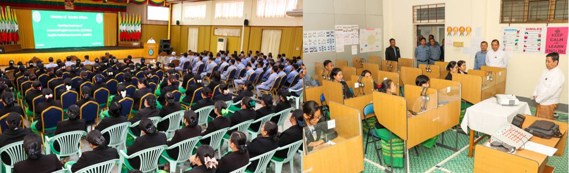 နယ်စပ်ရေးရာဝန်ကြီးဌာန၊ ဝန်ကြီးရုံးနှင့် ဦးစီးဌာနများတွင် တာဝန်ထမ်းဆောင်လျက်ရှိသည့် ဝန်ထမ်းများ၏ စွမ်းဆောင်ရည်မြင့်မားစေရေးအတွက် အဆင့်မြင့်အင်္ဂလိပ်စာသင်တန်းအမှတ်စဉ် (၁/၂၀၂၄)နှင့် အင်္ဂလိပ်စာစွမ်းရည်တိုးတက်ရေး သင်တန်းအမှတ်စဉ် (၁/၂၀၂၄) ဖွင့်ပွဲ အခမ်းအနားကို ယနေ့မွန်းလွဲပိုင်းတွင် ဝန်ကြီးဌာနစုပေါင်းခန်းမ၌ ကျင်းပသည်။