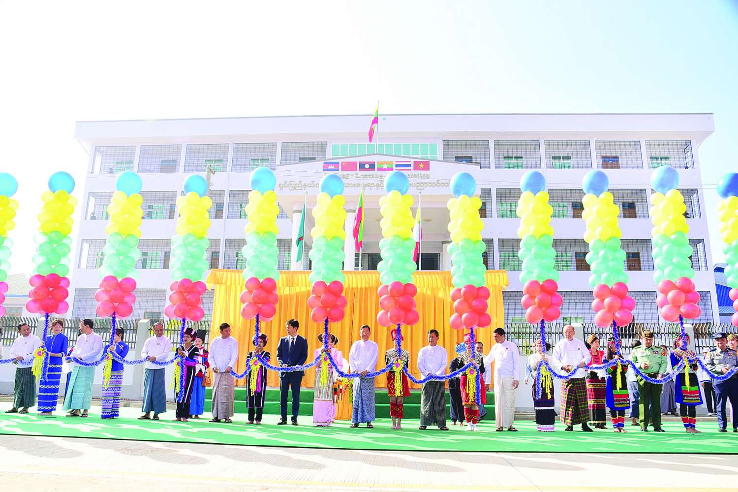 ဦးစွာ ရှမ်းပြည်နယ် တိုင်းရင်းသားရေးရာနှင့် သက်မွေးပညာသင်တန်းစင်တာ အဆောက်အအုံကို နိုင်ငံတော်စီမံအုပ်ချုပ်ရေးကောင်စီအဖွဲ့ဝင် ဒေါက်တာဘရွှေ၊ ခွန်စံလွင်၊ ပြည်ထောင်စု ဝန်ကြီးများဖြစ်ကြသည့် ဦးမင်းသိန်းဇံ၊ ဒေါက်တာစိုးဝင်း၊ Jeng Phang နော်တောင်၊ ပြည်နယ်ဝန်ကြီးချုပ် ဦးအောင်အောင်၊ မြန်မာနိုင်ငံဆိုင်ရာ တရုတ်သံရုံးမှ သံမှူးကြီး ဒေါက်တာကျန်းကျိဟုန်၊ ဒုတိယဝန်ကြီး ဒေါက်တာဇော်မြင့်၊ ဒေါက်တာအေးထွန်း၊ ဦးဇော်အေးမောင်နှင့် ရှမ်းပြည်နယ်အစိုးရအဖွဲ့ဝင် လုံခြုံရေးနှင့် နယ်စပ်ရေးရာဝန်ကြီး ဗိုလ်မှူးကြီးစိန်ဝင်း၊ လမ်းပန်းဆက်သွယ်ရေးဝန်ကြီး ရဲချုပ်တင်ကိုကိုနှင့် တိုင်းရင်းသားရေးရာဝန်ကြီး ဦးအောင်ကြည်ဝင်းတို့က ဖဲကြိုးဖြတ်ဖွင့်လှစ်ပေးကြပြီး နိုင်ငံတော်စီမံအုပ်ချုပ်ရေးကောင်စီအဖွဲ့ဝင် ဒေါက်တာဘရွှေ၊ ခွန်စံလွင်နှင့် သံမှူးကြီး ဒေါက်တာ ကျန်းကျိဟုန်တို့က ကမ္ပည်းမော်ကွန်းကျောက်စာကို စက်ခလုတ်နှိပ်ဖွင့်လှစ်ပေးကြ၍ အမွှေးနံ့သာရည်ဖြင့် ပက်ဖျန်းပေးကြပြီး စုပေါင်းမှတ်တမ်းတင်ဓာတ်ပုံရိုက်ကြသည်။