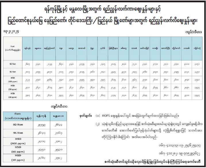 ရန်ကုန်မြို့နှင့် မန္တလေးမြို့အတွက် ရည်ညွှန်းလက်ကားဈေးနှုန်းများနှင့် ပြည်ထောင်စုနယ်မြေ နေပြည်တော်၊ တိုင်းဒေသကြီး/ပြည်နယ် မြို့တော်များအတွက် ရည်ညွှန်းလက်လီဈေးနှုန်းများ 02/13/2024