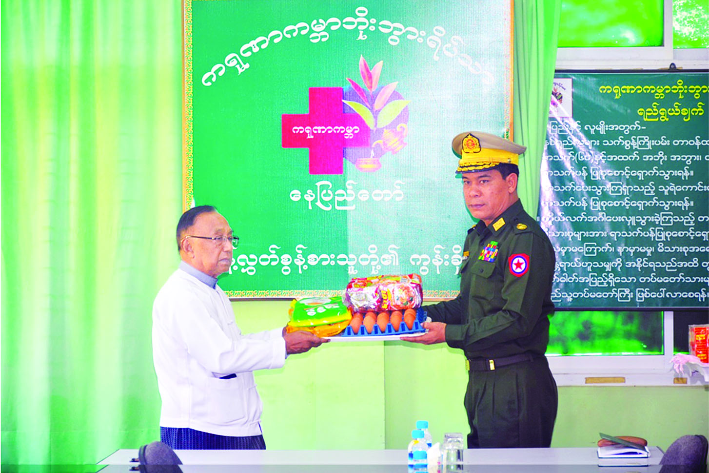 နေပြည်တော်ကောင်စီနယ်မြေ ဒက္ခိဏသီရိမြို့နယ် ကရုဏာကမ္ဘာ ဘိုးဘွားရိပ်သာ (နေပြည်တော်) ရှိ အဘိုး၊ အဘွားများအတွက် အလှူ ငွေများ၊ တိုင်းရင်းဆေးဝါးများနှင့် စားသောက်ဖွယ်ရာများ ပေးအပ်လှူဒါန်းခြင်းကို ယနေ့နံနက်ပိုင်းတွင် အဆိုပါ ဘိုးဘွားရိပ်သာရှိ ဗဟိုအလုပ်အမှုဆောင် ကော်မတီရုံး၌ ပြုလုပ်ရာ နေပြည်တော်တိုင်းစစ်ဌာနချုပ်တိုင်းမှူး ဗိုလ်ချုပ်စောသန်းလှိုင်နှင့် တာဝန်ရှိသူများ၊ ကရုဏာကမ္ဘာ ဘိုးဘွားရိပ်သာမှ တာဝန်ရှိသူများ တက်ရောက်ကြသည်။