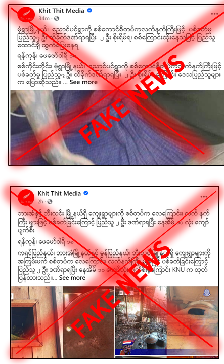 အလားတူ ဖေဖော်ဝါရီ ၁၅ ရက်နေ့တွင်လည်း ကရင်ပြည်နယ်၊ ဘားအံမြို့နယ်ရှိ ရေအေးရွာကို တပ်မတော်က လက်နက်ကြီးများဖြင့် ပစ်ခတ်ခြင်းကြောင့် ပြည်သူ ၂ ဦး ဒဏ်ရာရပြီး နေအိမ် ၁၀ လုံးကျော် ပျက်စီးခဲ့သည်ဟု မဟုတ်မမှန် ရေးသားဖော်ပြထားရှိသည်ကို တွေ့ရှိရပြီး မြေပြင်စုံစမ်းသိရှိရသော သတင်းများအရ ၎င်းနေ့တွင် တပ်မတော်၏ နယ်မြေလုံခြုံရေး တာဝန်ထမ်းဆောင်သည့်အဖွဲ့အား အကြမ်းဖက်သောင်းကျန်းသူများက လက်နက်ကြီး/ငယ်များဖြင့် ရမ်းသမ်းပစ်ခတ်မှုကြောင့် ဒေသခံကျေးရွာအတွင်းသို့ လက်နက်ကြီးကျည်များ ကျရောက်ပေါက်ကွဲမှုကြောင့် ပြည်သူများ ထိခိုက်ဒဏ်ရာရရှိခြင်းများ ဖြစ်ပွားခဲ့ကြောင်းသိရှိရပြီး ၎င်းဖြစ်စဉ်ကို အကြမ်းဖက်အားပေးပြည်ဖျက်မီဒီယာများက မဟုတ်မမှန် သတင်းများထုတ်လွှင့်ကာ အများပြည်သူ အထင်အမြင်လွဲမှားစေရန် လုပ်ဆောင်နေခြင်းသာဖြစ်ကြောင်း သတင်းရရှိသည်။