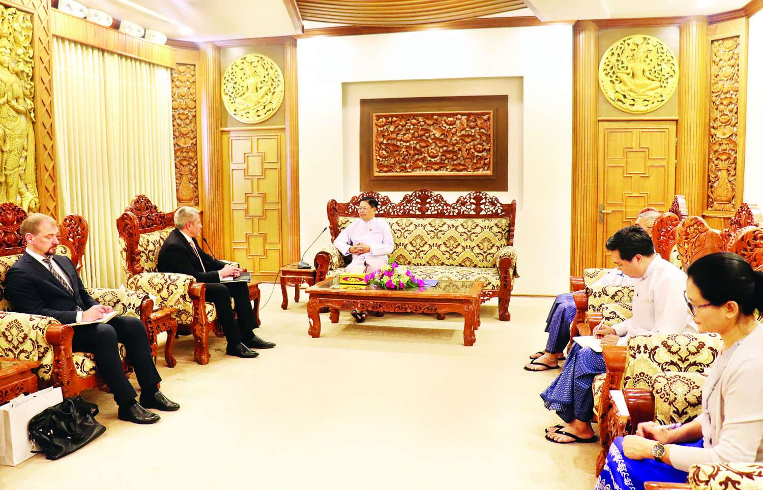 ဒုတိယဝန်ကြီးချုပ်နှင့် နိုင်ငံခြားရေးဝန်ကြီးဌာန ပြည်ထောင်စုဝန်ကြီး ဦးသန်းဆွေသည် ပြည်ထောင်စု သမ္မတ မြန်မာနိုင်ငံတော်ဆိုင်ရာ ဘယ်လာရုစ်နိုင်ငံ သံအမတ်ကြီး H. E. Mr. Uladzimir Baravikou အား ယနေ့နံနက် ၁၀ နာရီတွင် နေပြည်တော်ရှိ နိုင်ငံခြားရေးဝန်ကြီးဌာန၌ လက်ခံတွေ့ဆုံသည်။