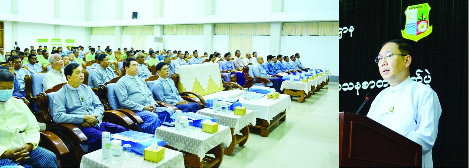 ယနေ့ ရင်ဆိုင်နေရသည့် သစ်တောနှင့် ပတ်ဝန်းကျင်ဆိုင်ရာ ပြဿနာများကို ဖြေရှင်းနိုင်မည့် နည်းလမ်းများကို ချဉ်းကပ်မှုပုံစံသစ်များဖြင့် သုတေသနပြုဆောင်ရွက်ကြရမည်ဖြစ်သကဲ့သို့ သတ္တုကဏ္ဍတွင်လည်း သဘာဝပတ်ဝန်းကျင်ပျက်စီးမှု အနည်းဆုံးဖြစ်စေမည့် Responsible Mining ဖြစ်စေရန် သုတေသနပြုဆောင်ရွက်သွားရမည်ဖြစ်ကြောင်း၊ ဝန်ကြီးဌာနအနေဖြင့် သစ်တော၊ သတ္တုနှင့် ပတ်ဝန်းကျင်ဆိုင်ရာ သုတေသနအကြံပေးကော်မတီကို ဖွဲ့စည်းပေးခဲ့ပြီး ကဏ္ဍသုံးရပ် ပူးပေါင်းသုတေသနလုပ်ငန်းများ ဆောင်ရွက်သွားမည် ဖြစ်သည့်အတွက် အကျိုးရှိသည့် သုတေသနကောင်းများစွာ ပေါ်ထွက်လာနိုင်မည်ဖြစ်ကြောင်းနှင့် သုတေသီများအနေဖြင့် ဌာနနှင့် နိုင်ငံအတွက် လက်တွေ့အကျိုးရှိစေမည့် အသုံးချသုတေသနရလဒ်များပေါ်ထွက်လာအောင် ကြိုးပမ်းအားထုတ်ကြရန် တိုက်တွန်းပါကြောင်း ပြောကြားသည်။