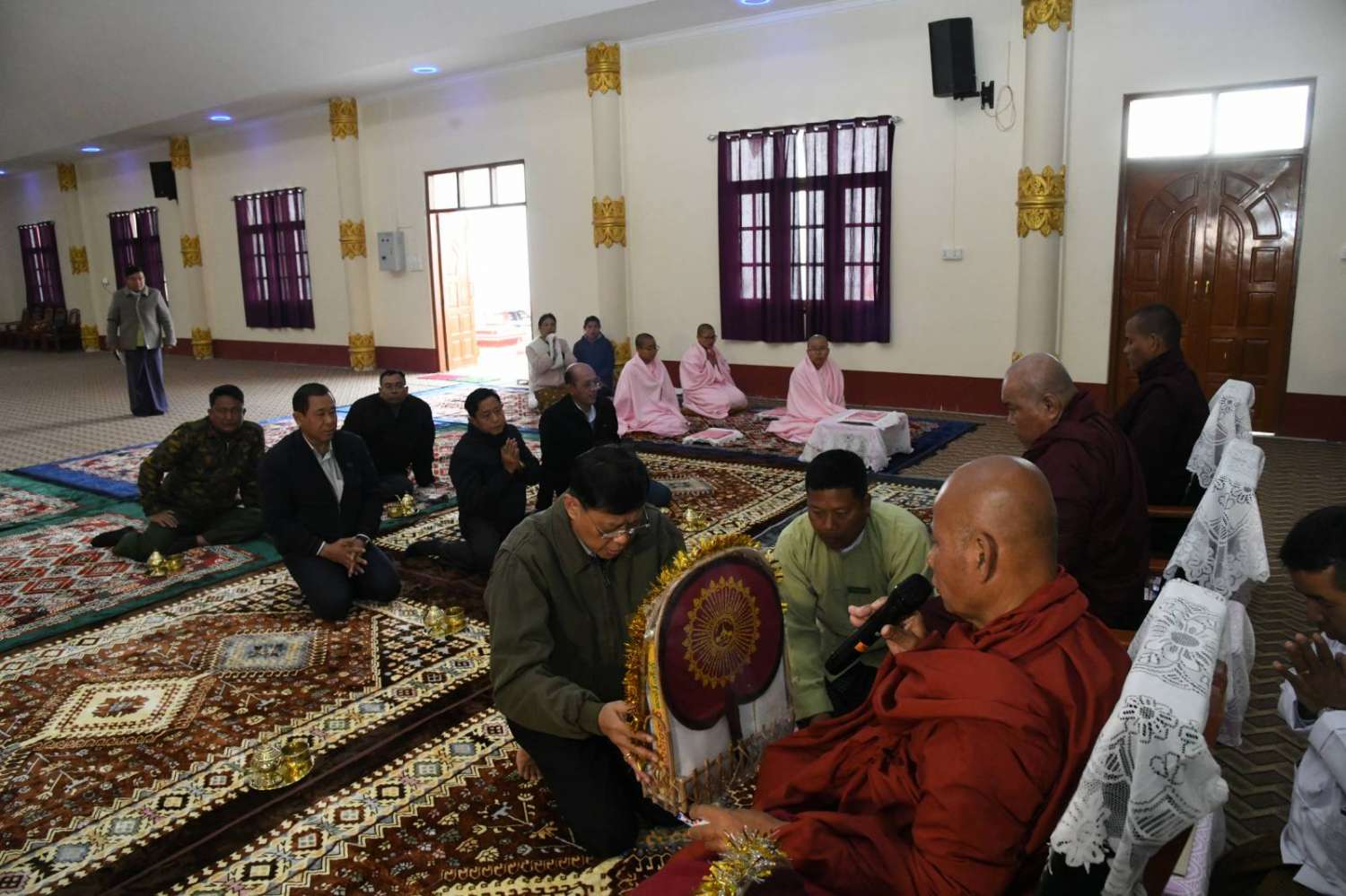ဟားခါးမြို့သို့ရောက်ရှိနေသော နိုင်ငံတော်စီမံအုပ်ချုပ်ရေးကောင်စီအဖွဲ့ဝင် ဒုတိယဝန်ကြီးချုပ်နှင့် ပို့ဆောင်ရေးနှင့်ဆက်သွယ်ရေးဝန်ကြီးဌာန ပြည်ထောင်စုဝန်ကြီး ဗိုလ်ချုပ်ကြီးမြထွန်းဦးသည် ဖေဖော်ဝါရီလ ၂၁ ရက် နံနက်ပိုင်းတွင် ဟားခါးမြို့၊ မြို့ဦးကျောင်းတိုက်ရှိ အတုလဂုဏ်ရည်သာသနဗိမာန် သို့သွားရောက်၍ (၇၆) နှစ်မြောက် ချင်းအမျိုးသားနေ့ အထိမ်းအမှတ်အဖြစ် ဆရာတော်၊ သံဃာတော် အရှင်သူမြတ်များအား လှူဖွယ်ဝတ္ထုပစ္စည်းများ ဆက်ကပ်လှူဒါန်းသည်။ ရှေးဦးစွာ နမောတဿ (၃) ကြိမ်ရွတ်ဆို ဘုရားကန်တော့၍ ဟားခါး-ထန်တလန်မြို့နယ် သံဃနာယကအဖွဲ့ဥက္ကဋ္ဌ၊ ဟားခါးမြို့ ကျောဘုတ်သာသနာပြုကျောင်းဆရာတော် အဂ္ဂမဟာသဒ္ဓမ္မဇောတိကဓဇ ဘဒ္ဒန္တပညောဘာသအရှင်သူမြတ်ထံမှ ငါးပါးသီလခံယူဆောက်တည်ကြကာ လှူဖွယ်ဝတ္ထုပစ္စည်းများ ဆက်ကပ်လှူဒါန်းပြီး လှူဒါန်းမှုအစုစုအတွက် ရေစက်သွန်းချအမျှပေးဝေခဲ့သည်။