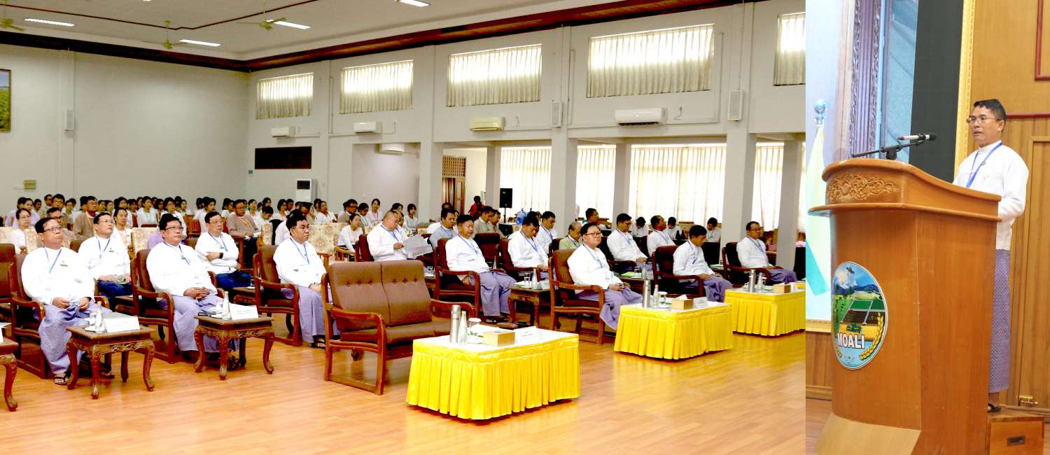 ဦးစွာ ပြည်ထောင်စုဝန်ကြီးက နိုင်ငံတော်အနေဖြင့် သီးနှံများစိုက်ပျိုးထုတ်လုပ်မှု တိုးတက်လာစေရေးအတွက် နိုင်ငံစီးပွားမြှင့်တင်ရေးရန်ပုံငွေဖြင့် ပဲတီစိမ်း၊ နွေစပါး၊ မိုးစပါးနှင့် ဆီထွက်သီးနှံ စီမံကိန်းများကို တိုင်းဒေသကြီးနှင့် ပြည်နယ်အစိုးရအဖွဲ့များ၏ စီမံခန့်ခွဲမှုဖြင့် စိုက်ပျိုးရေး၊ မွေးမြူရေးနှင့် ဆည်မြောင်းဝန်ကြီးဌာနက နည်းပညာများပေါင်းစပ် ဆောင်ရွက်ပေးလျက်ရှိသည့်အပြင် ဝါသီးနှံစိုက်ဧရိယာ တိုးချဲ့စိုက်ပျိုးရေးနှင့် အထွက်နှုန်းတိုးတက်ရေး၊ ကော်ဖီသီးနှံစိုက်ဧရိယာ တိုးချဲ့စိုက်ပျိုးရေးတို့ကိုလည်း ဆောင်ရွက်သွားမည် ဖြစ်သည့်အတွက် လက်ရှိဆောင်ရွက်နေသည့် စီမံကိန်းများ၏အားသာချက်၊ အားနည်းချက်များကို လူငယ်ပညာရှင်များအနေဖြင့် သုတေသနပြုပြီး စိုက်ပျိုးရေးနှင့်မွေးမြူရေးကဏ္ဍ ဖွံ့ဖြိုးတိုးတက်အောင် ကြိုးပမ်းသွားကြရန် တိုက်တွန်းပါကြောင်း။