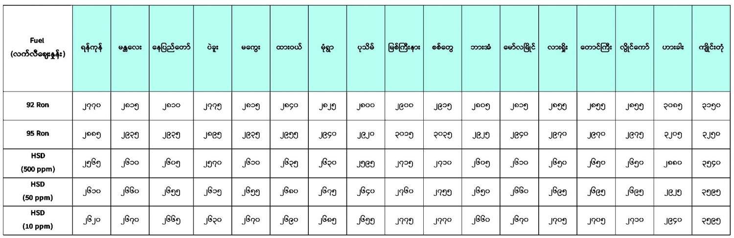 ရန်ကုန်မြို့နှင့် မန္တလေးမြို့အတွက် ရည်ညွှန်းလက်ကားဈေးနှုန်းများနှင့် ပြည်ထောင်စုနယ်မြေ နေပြည်တော်၊ တိုင်းဒေသကြီး/ ပြည်နယ် မြို့တော်များအတွက် ရည်ညွှန်းလက်လီဈေးနှုန်းများ 02/29/2024