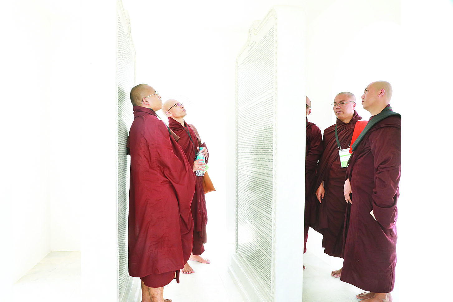 ထို့နောက် ဘုရားဖူးလာ သံဃာတော်များနှင့် ဥပဒေရေးရာဝန်ကြီးဌာနမှ ဒုတိယဝန်ကြီးနှင့် ဒုတိယရှေ့နေချုပ်၊ ဥပဒေချုပ်များ၊ ဥပဒေအရာရှိများသည် ဗုဒ္ဓဥယျာဉ်တော်အတွင်း တည်ဆောက်ထားရှိသည့် မော်ကွန်းတိုက်၌ မာရဝိဇယဗုဒ္ဓရုပ်ပွားတော်မြတ်ကြီးနှင့် ဗုဒ္ဓဥယျာဉ်တော်ပုံစံငယ်ပြသထားမှု၊ ဗုဒ္ဓဥယျာဉ်တော်အတွင်းကျင်းပခဲ့သည့် မဟာမင်္ဂလာအခမ်းအနားများတွင် အသုံးပြုခဲ့သည့်ပစ္စည်းများ၊ ဘုရားရှင်ဓာတ်တော်၊ ရဟန္တာဓာတ်တော်များ ထည့်သွင်းပူဇော်ခဲ့သည့် ရွှေဖလားများ၊ မာရဝိဇယဆင်းတုတော်ကြီးအား အစိတ်အပိုင်းလေးပိုင်းခွဲ၍ တည်ဆောက်ထားသော ဆင်းတုတော်ကြီးပုံစံငယ်များ၊ မြန်မာ့ရိုးရာ ပန်းဆယ်မျိုးလက်ရာပုံစံငယ်များ၊ ရုပ်ပွားတော်မြတ်ကြီး တည်ထားပူဇော်မှုမှတ်တမ်းဓာတ်ပုံများ၊ ဗိသုကာလက်ရာများဖြင့် ခမ်းနားထည်ဝါစွာ တည်ထားပူဇော်ထားသည့် အဂ္ဂါဓိပတိသာသနာ့ဗိမာန်တော်ကြီး၊ ကျောက်စာရုံစေတီတော်များ၊ မုစလိန္ဒအိုင်နှင့် အခြားသာသနိကအဆောက်အအုံများကို ဆက်လက်ဖူးမြော်လေ့လာကြည်ညိုခဲ့ကြသည်။