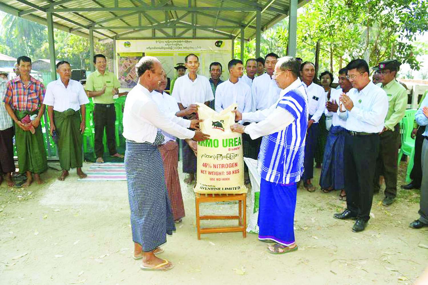ဦးစွာ နိုင်ငံတော်စီမံအုပ်ချုပ်ရေးကောင်စီအဖွဲ့ဝင်၊ တိုင်းဒေသကြီးဝန်ကြီးချုပ်နှင့် အဖွဲ့သည် လပွတ္တာခရိုင် မော်လမြိုင်ကျွန်းမြို့နယ် မရဲ့အုန်းပင်စုကျေးရွာရှိ တောင်သူဦးတင်အောင်သန်း၏ စိုက်ဧက လေးဧကတွင်စိုက်ပျိုးထားသည့် ပိုက်ဆံလျှော်မျိုးစေ့ ထုတ်စိုက်ခင်းနှင့် မရဲ့အုန်းပင်စုကျေးရွာ စက်မှုလယ်ယာစနစ်ကျ စံပြလယ်ယာမြေ ဧက ၁၀၀ တွင် ဓာတ်မြေဩဇာနှင့် သဘာဝမြေဩဇာအချိုးကျ ရောစပ်ကြဲပက်နေမှုများကို ကြည့်ရှုအားပေး၍ တောင်သူများထံသို့ မြေဩဇာများ ထောက်ပံ့ပေးအပ်သည်။
