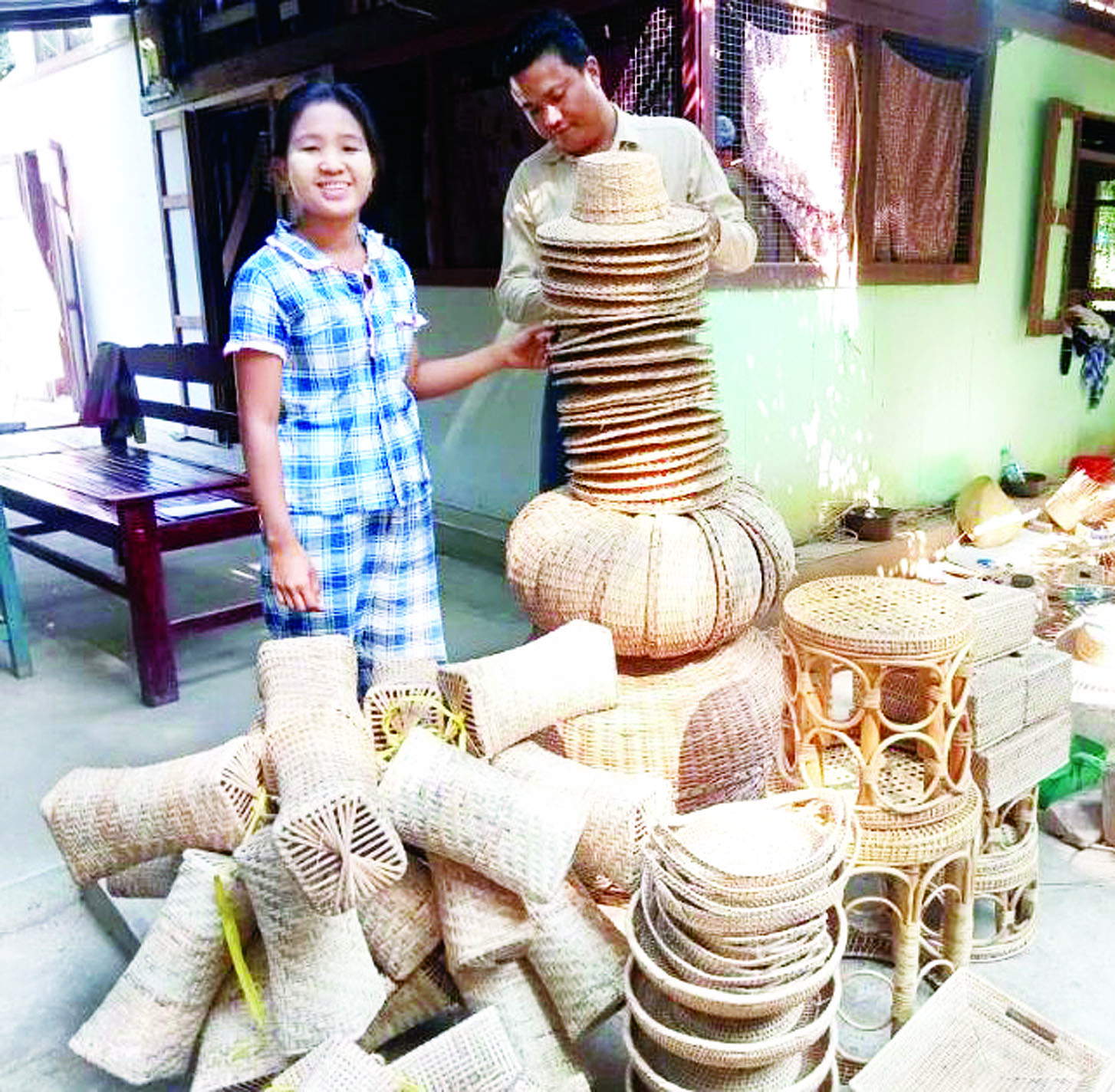 ဖြေ ။ ။ ကျွန်မတို့ လုပ်ကိုင်နေတာကတော့ ကြိမ်ခေါင်းအုံး၊ ကြိမ်ဦးထုပ်၊ ကြိမ်အုပ်ဆောင်း (အကြီး/အသေး)၊ ကြိမ်တစ်ရှူးဘူး (အဝိုင်း၊ လေးထောင့်၊ အကြီး၊ အသေး)၊ ကြိမ်ပန်း ခြင်း၊ ကြိမ်ထိုင်ခုံ (အရွယ်အစားမျိုးစုံ)၊ ကြိမ်ဗန်း၊ ကြိမ်ကုလားထိုင်စသည်ဖြင့်ပေါ့ အော်ဒါမှာတဲ့ ပစ္စည်းပုံစံတွေကို ဦးစားပေး လုပ်ကိုင်နေ ပါတယ်။